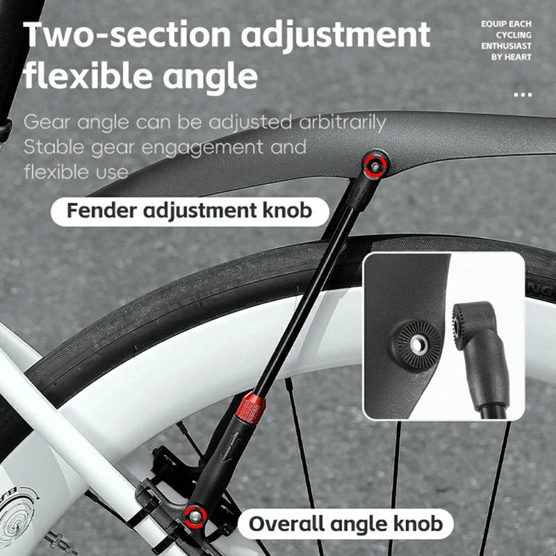 - Adjustable support rod for a personalized fit: the mudguard is equipped with an adjustable support rod, allowing you to change its height and angle for a perfect fit on your bike