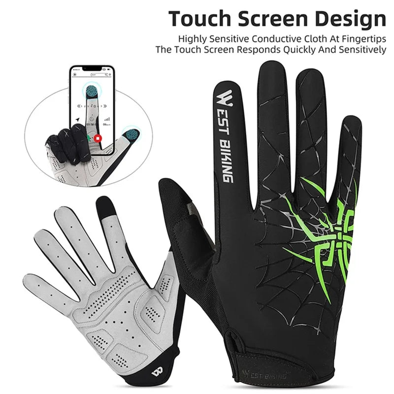 1635 Spider web fabric gloves, touch screen, full fingers - Black+Green