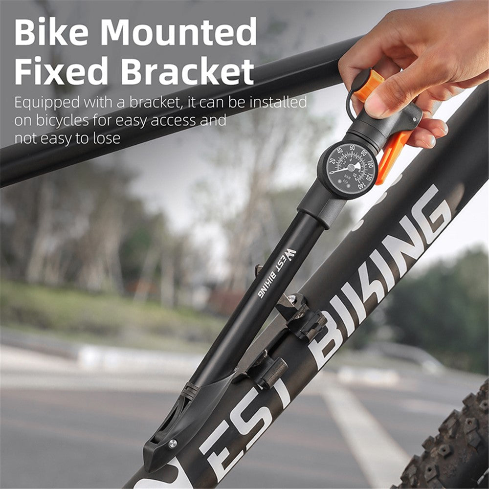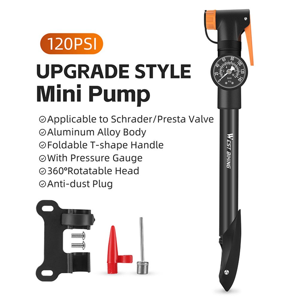 WEST BIKING YP0711162 Portable Mini Bike Pump with Pressure Gauge – Compatible with Presta & Schrader