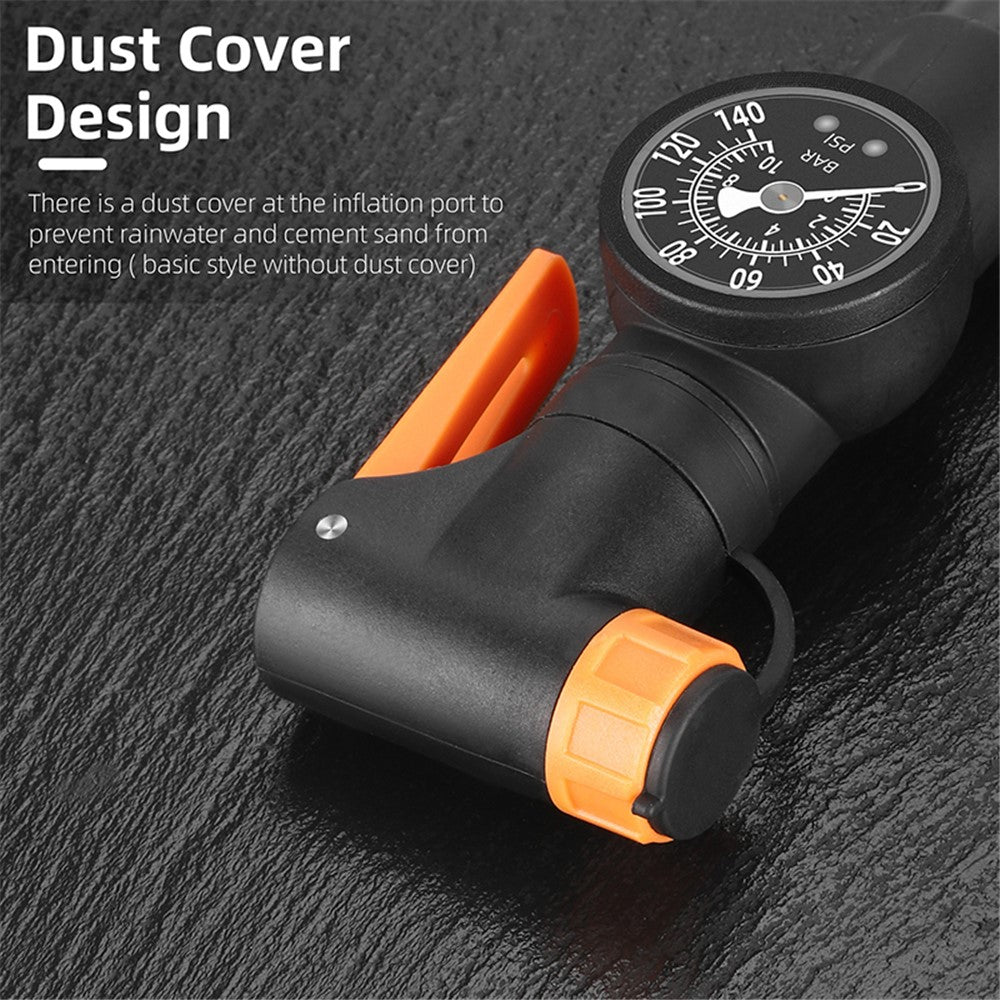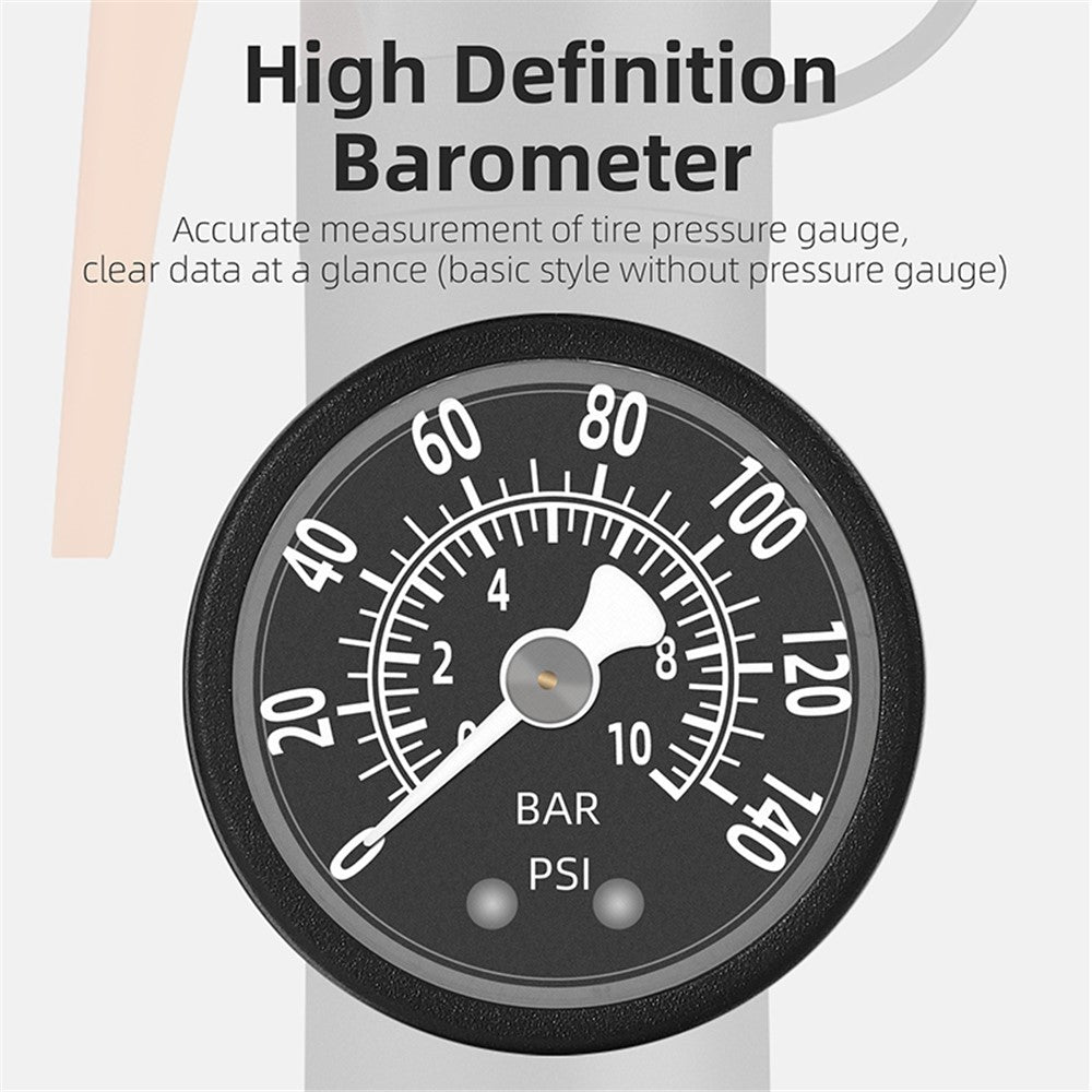 - Type: mini pump with integrated pressure gauge