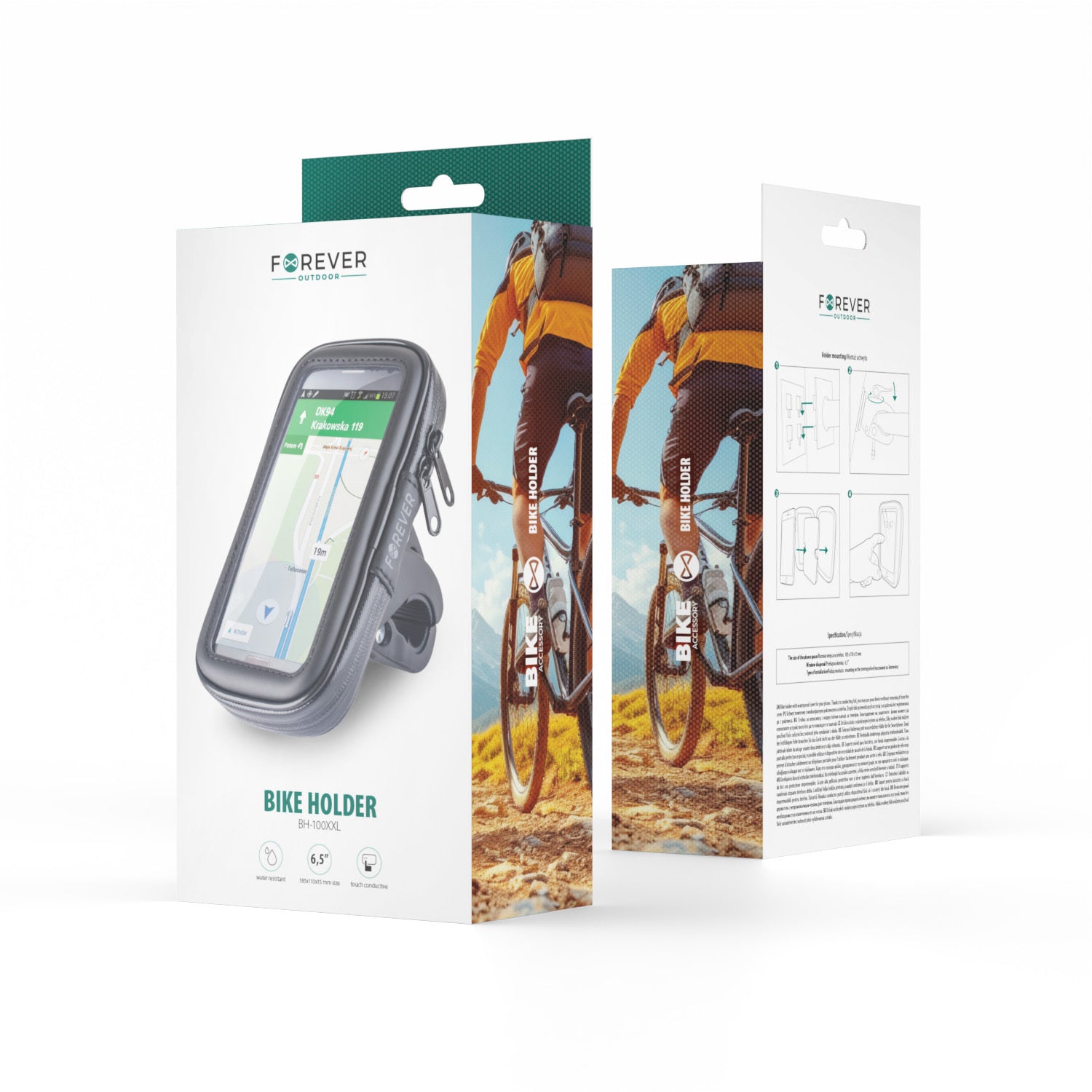 The Forever BH-100 XXL is a smartphone mount designed for demanding cyclists, combining maximum protection, accessibility, and intuitive use. Ideal for urban trips as well as outdoor adventures, it guarantees comfortable use of your phone, even in the rain.