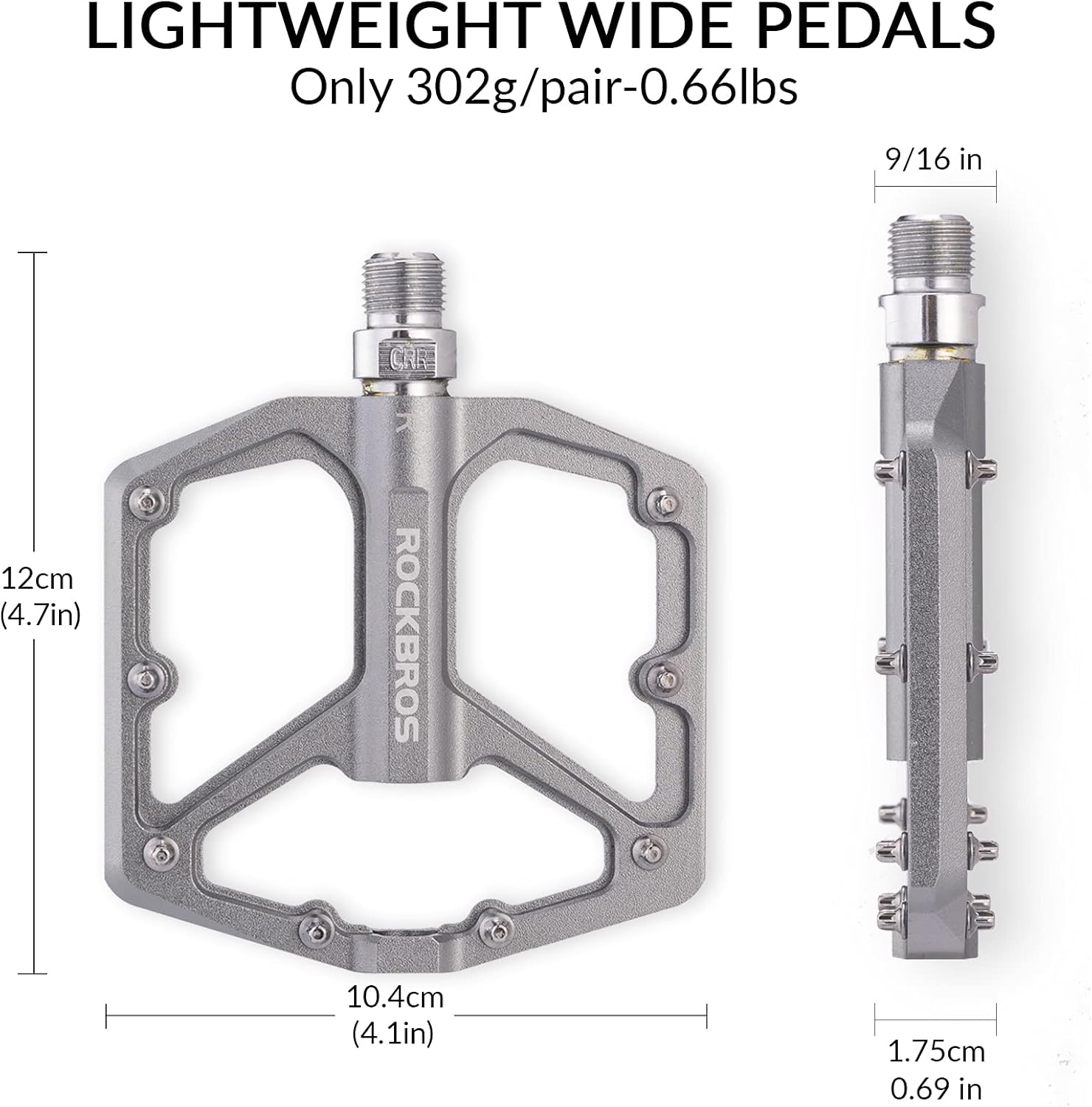 ROCKBROS aluminum flat pedals are an excellent choice for cyclists looking for pedals that are lightweight, high-performing, and reliable. Weighing only 302 g per pair, they offer increased pedaling comfort while improving efficiency.