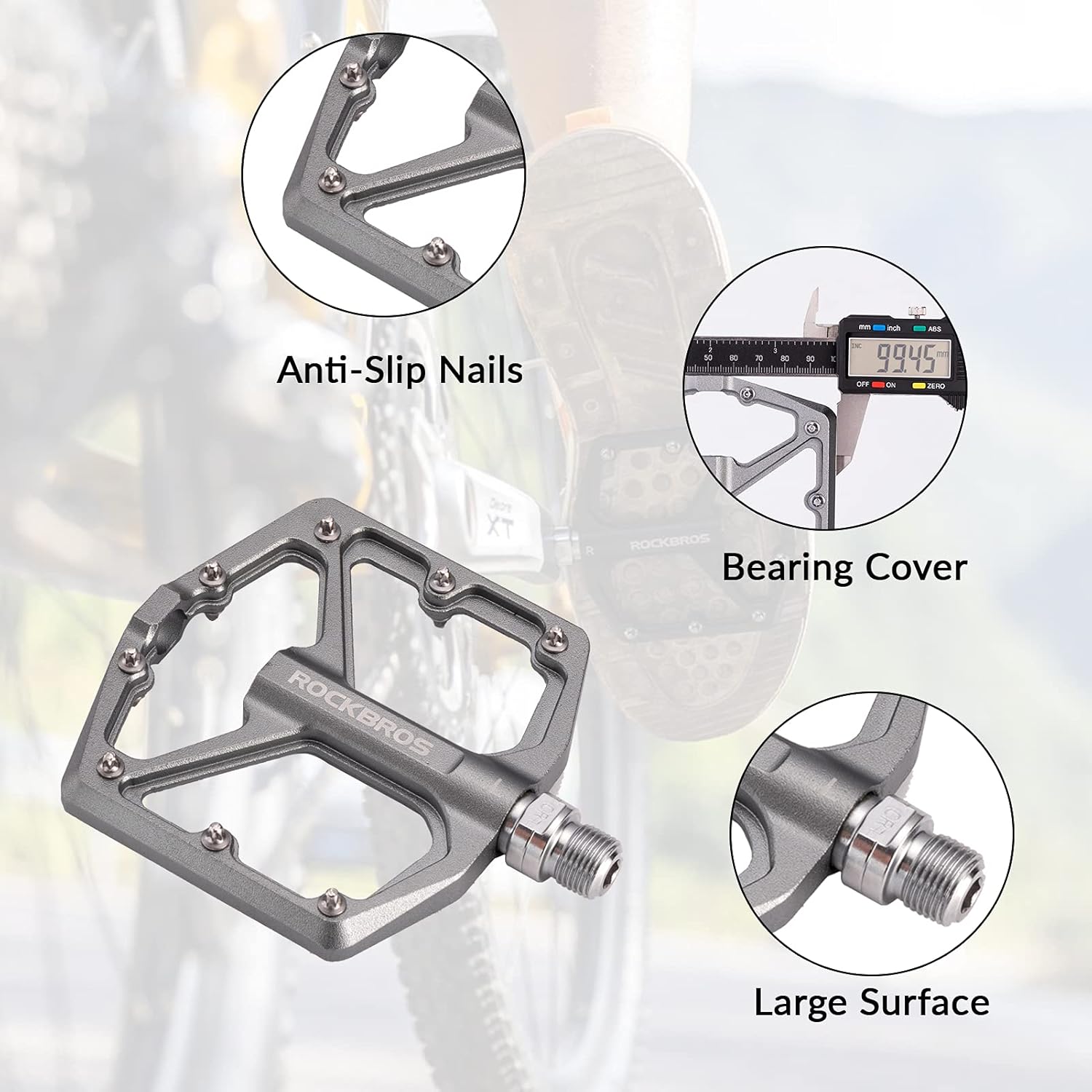 Superior grip: Each pedal is equipped with 8 anti-slip pins that improve contact between your feet and the platform, offering perfect grip even in wet or muddy conditions.