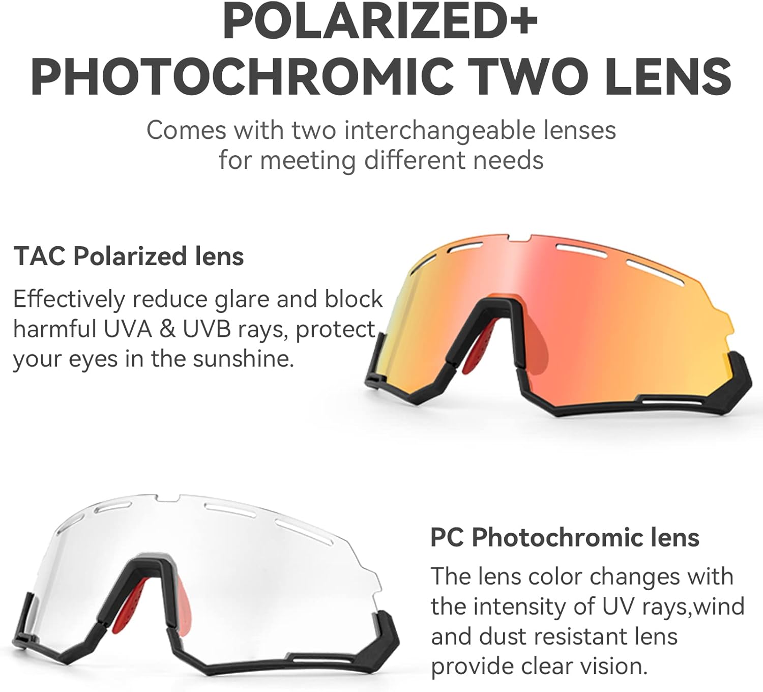 ROCKBROS Sports Sunglasses with Interchangeable Polarized + Photochromic Lenses