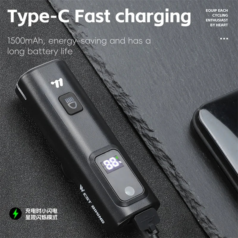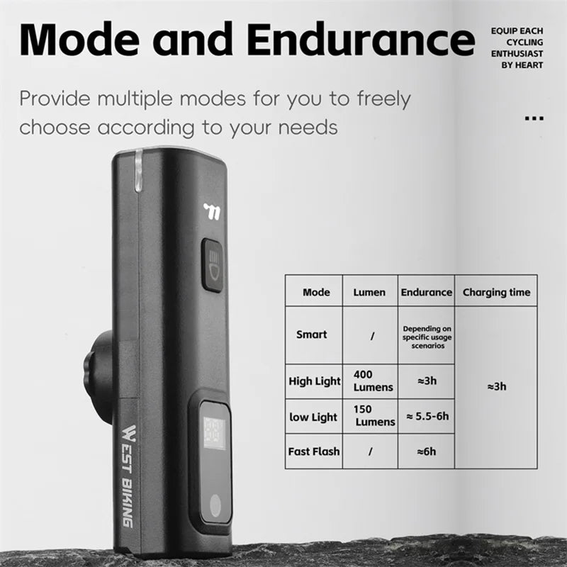 WEST BIKING YP0701458 Smart Front Bicycle Light with Light Detection 400 Lumens (with Digital Display)