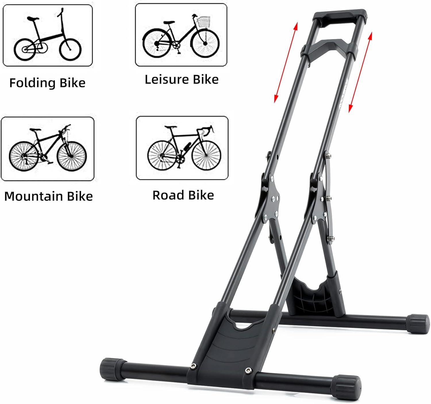 Ahorro de Espacio Inteligente: Guarde sus bicicletas de pie en lugar de apoyarlas en su pata de cabra, optimizando así el espacio en su garaje o interior. Fácil de mover y plegar/desplegar si es necesario.