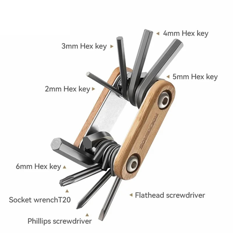 "Kit de herramientas para bicicleta 8 en 1 ROCKBROS - Acero y Madera - Multifuncional - Supervivencia"