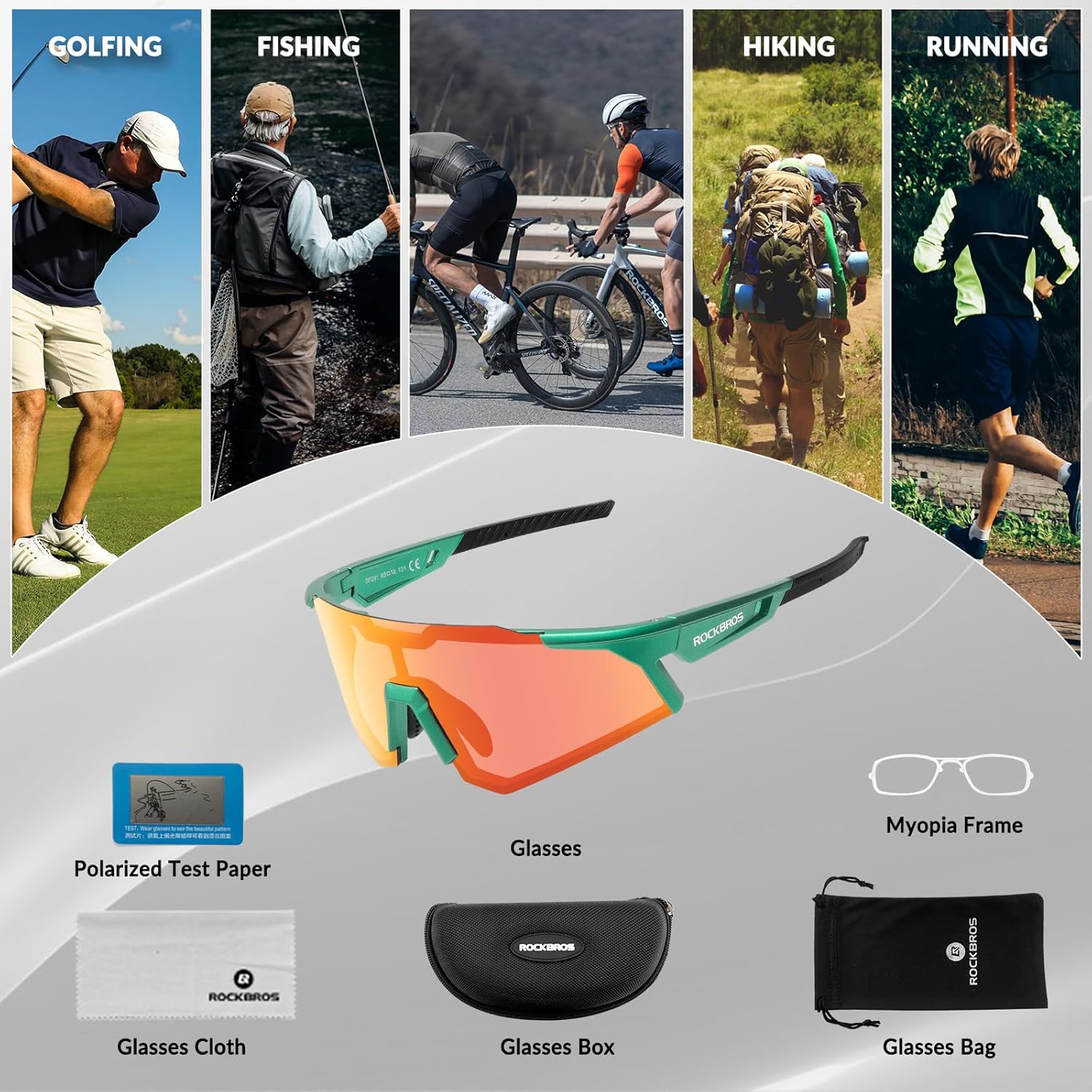 ROCKBROS: Gafas de ciclismo polarizadas de alta definición para un rendimiento óptimo al aire libre. Montura oculta en TR90 y lentes TAC cortaviento y transpirables para hombre y mujer. Ideales para ciclismo, carrera, pesca, golf y otros deportes al aire libre.