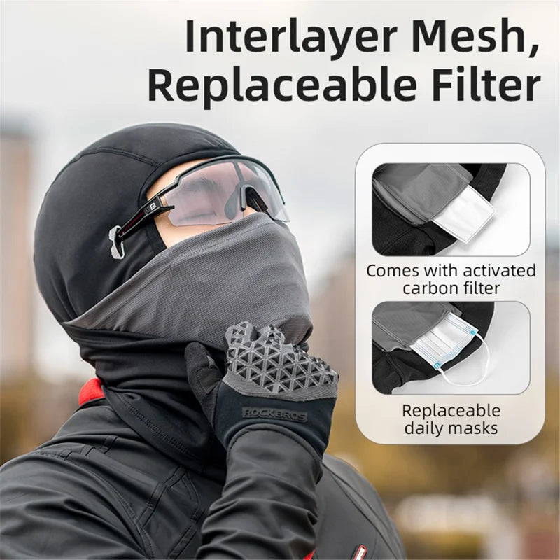 ROCKBROS 13420045001 Mascarilla facial corta de polar cálida, cortaviento, para moto y ciclismo, pasamontañas con filtro reemplazable