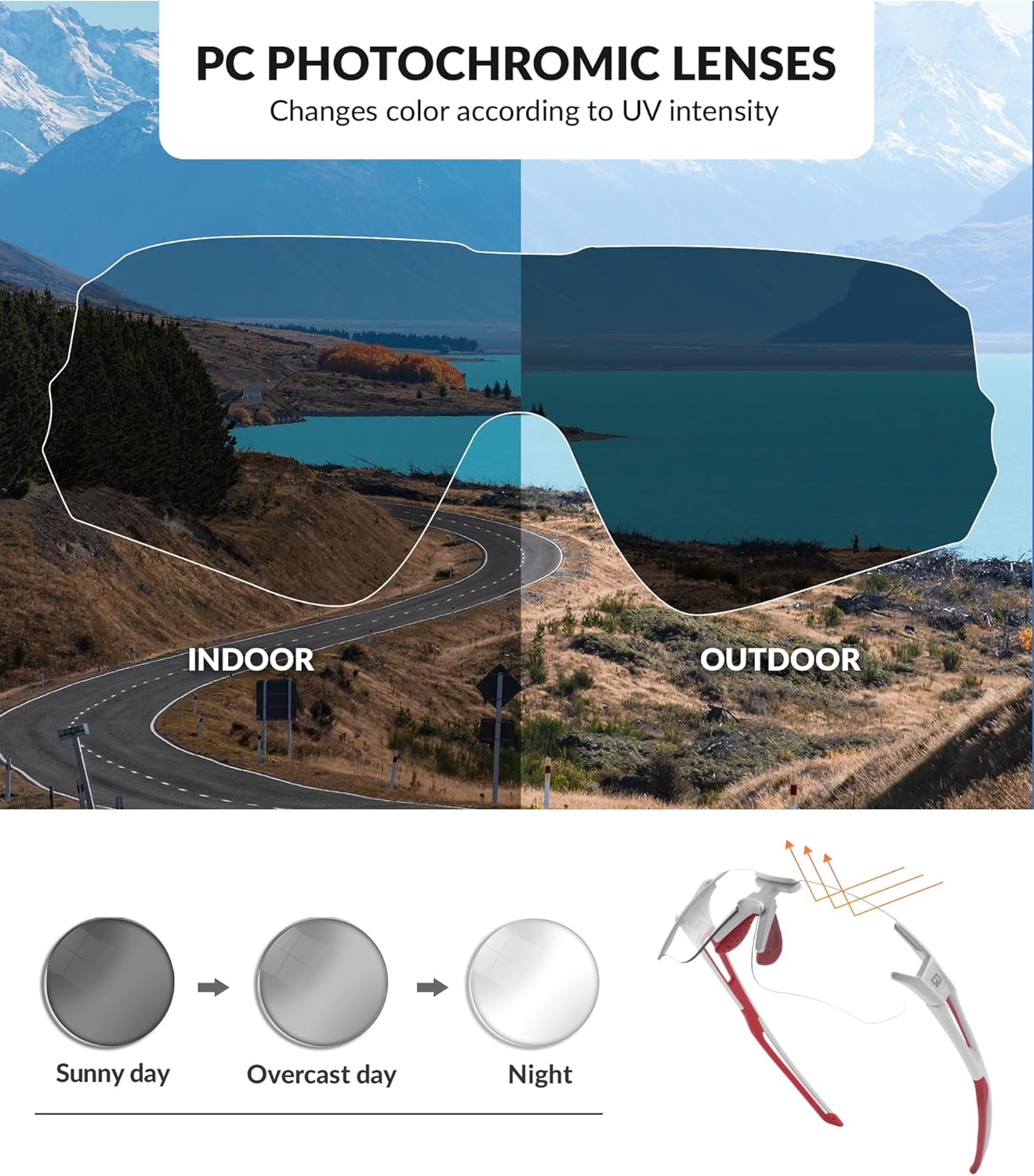 Una Visión del Mundo Más Rica: Experimenta una claridad visual superior gracias a los lentes ROCKBROS que aumentan el contraste y la profundidad de percepción, protegiendo tus ojos en condiciones de luz cambiantes, desde cielos parcialmente nublados hasta sol brillante, ideales para aficionados al ciclismo, pesca, carrera, escalada, etc.