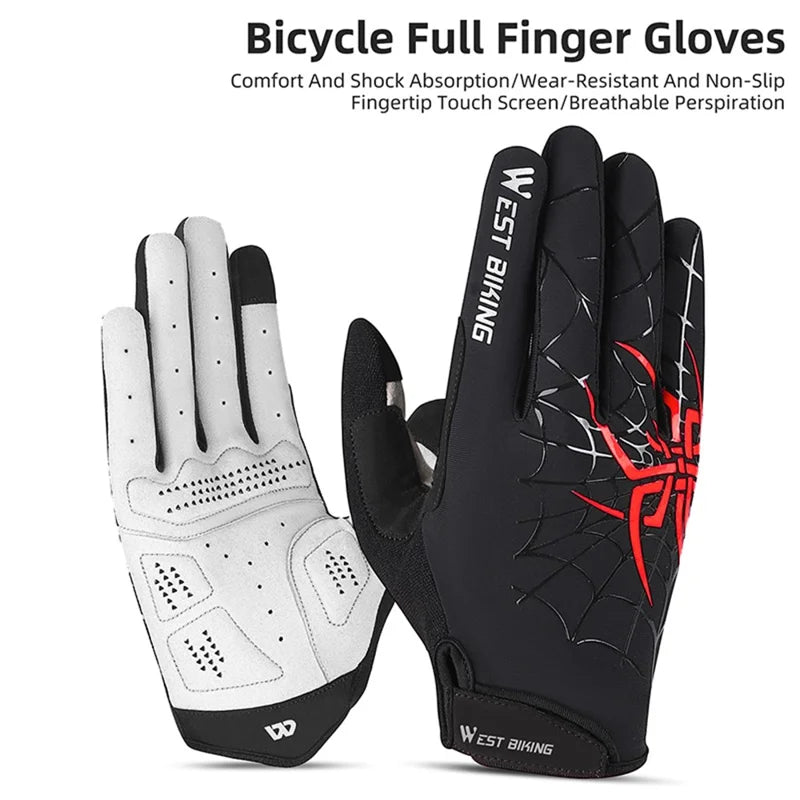 1837Guantes de tela de araña, táctiles, dedos completos - Negro+Rojo