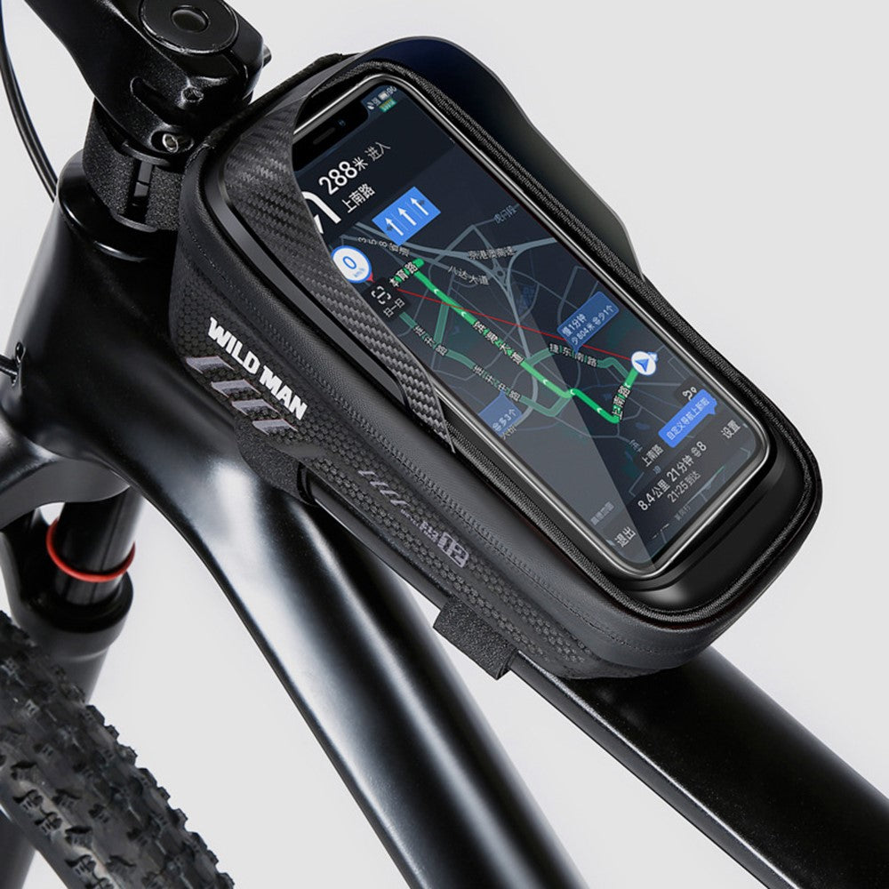 WILD MAN E12 Bolsa Impermeable para Bicicleta – Bolsa para Tubo Superior 1L con Pantalla Táctil – Negra