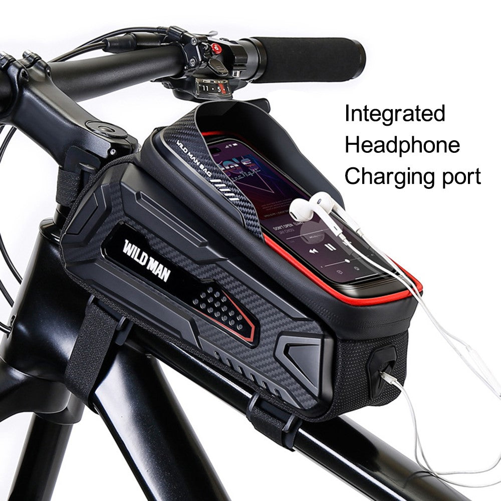 WILD MAN M30 Bolsa para Bicicleta Impermeable – Bolsa para Tubo Superior 1L con Pantalla Táctil – Negra & Roja