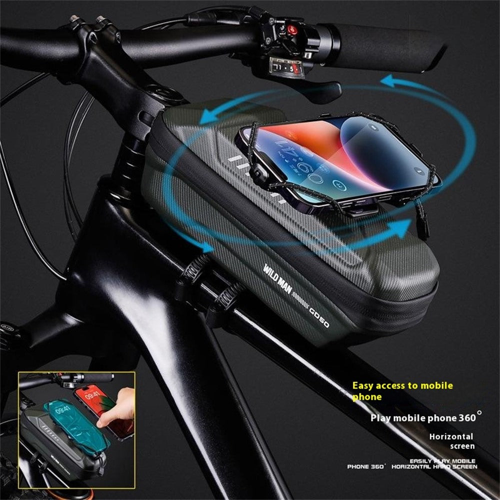 WILD MAN GD50 Bolsa de Cuadro para Bicicleta Rígida EVA 1L – Soporte de Teléfono Giratorio 360° y Fijación Rápida – Negra