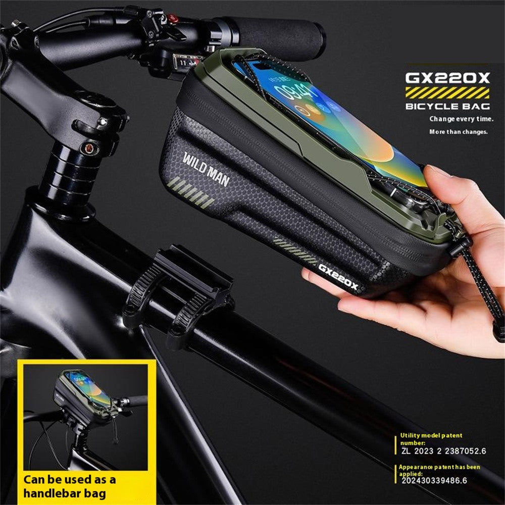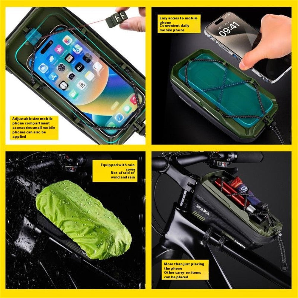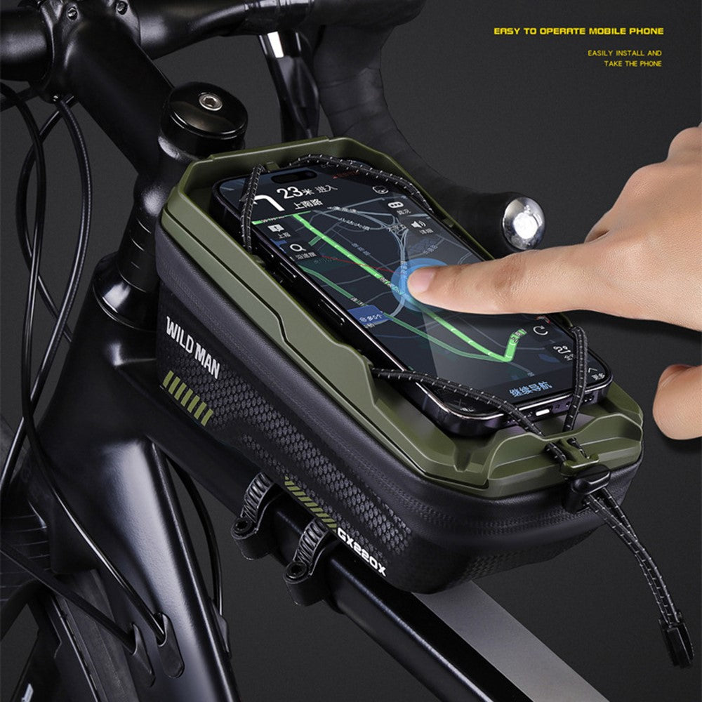 WILD MAN GX220X Bolsa Rígida de Cuadro para Bicicleta 1L – Fijación Rápida con Soporte para Teléfono – Verde Ejército
