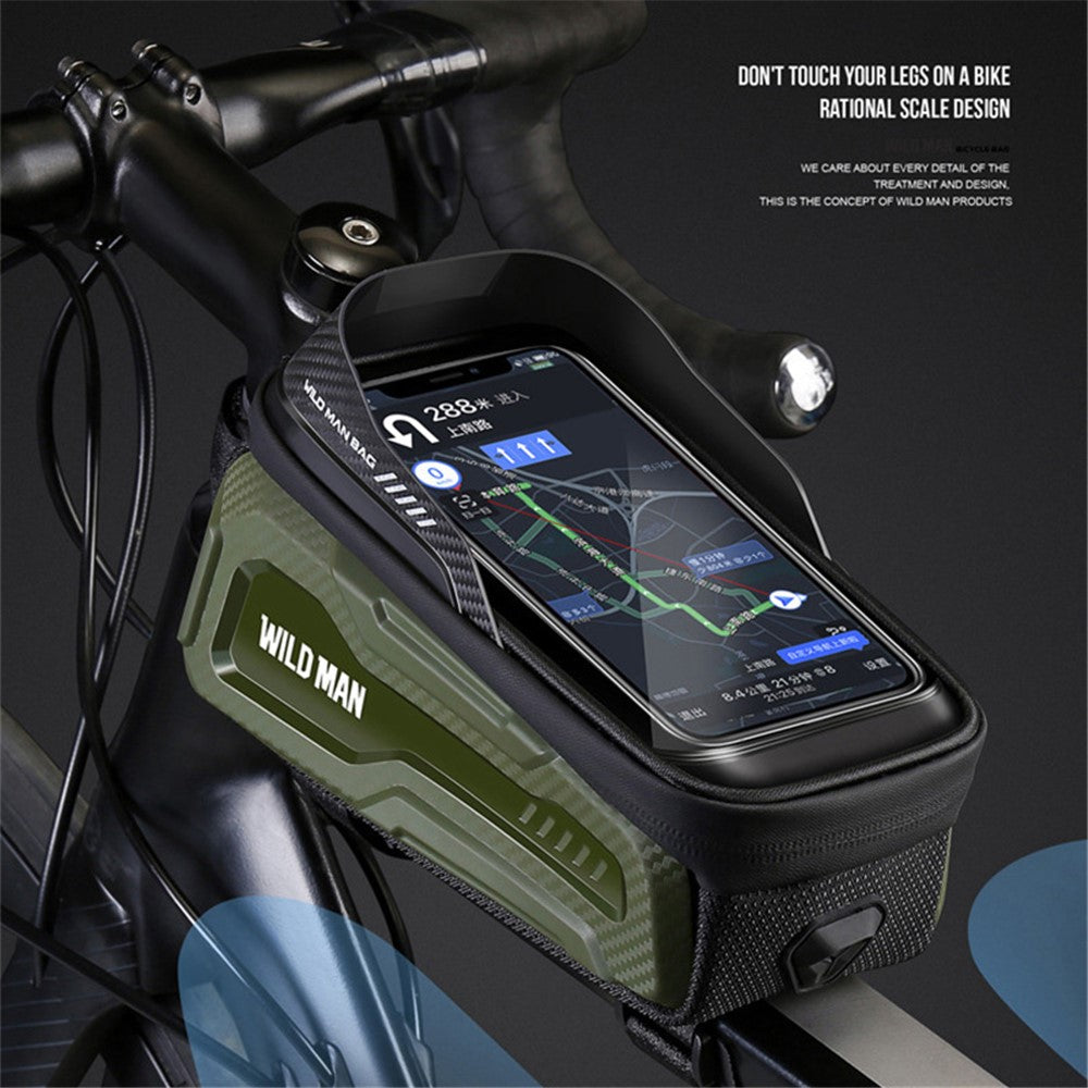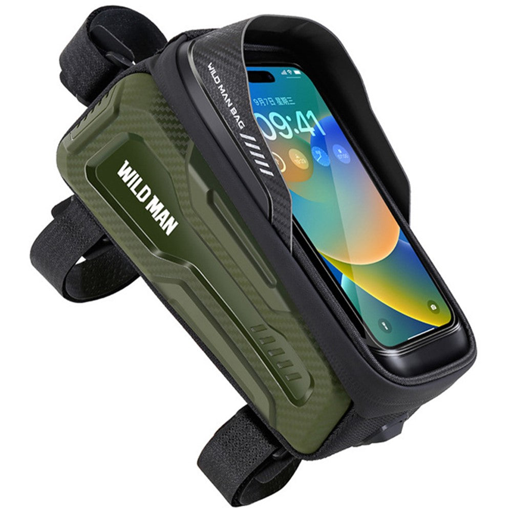 WILD MAN M20 Bolsa de Cuadro para Bicicleta Rígida con Pantalla Táctil – Soporte para Teléfono Impermeable – Verde Ejército