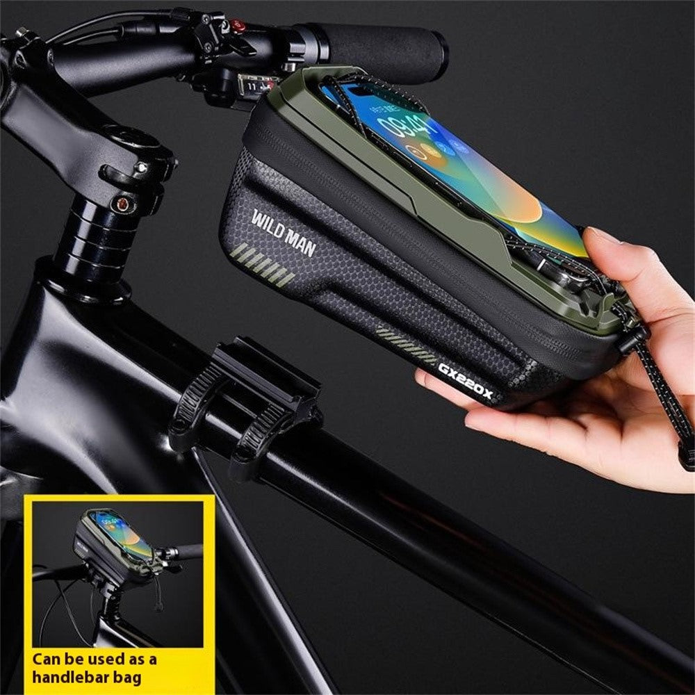 WILD MAN GD50 Bolsa de Cuadro para Bicicleta Rígida EVA 1L – Soporte Giratorio para Teléfono 360° y Fijación Rápida – Verde Ejército
