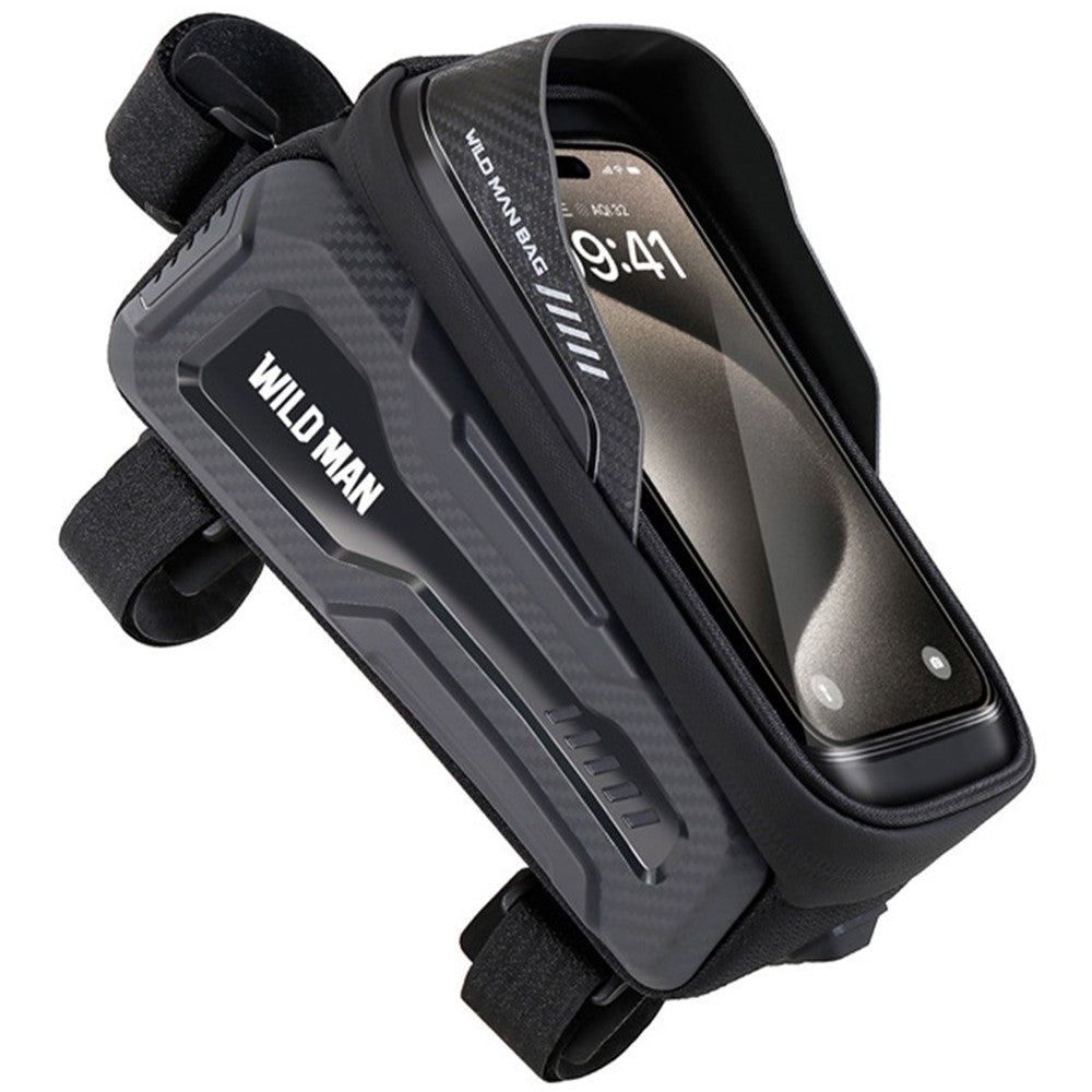 WILD MAN M20 Bolsa de Cuadro de Bicicleta Rígida con Pantalla Táctil – Soporte para Teléfono Impermeable – Gris