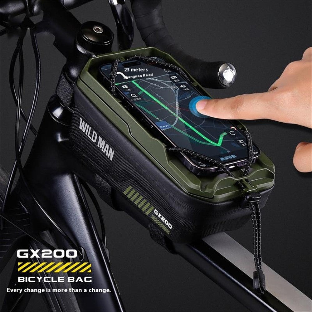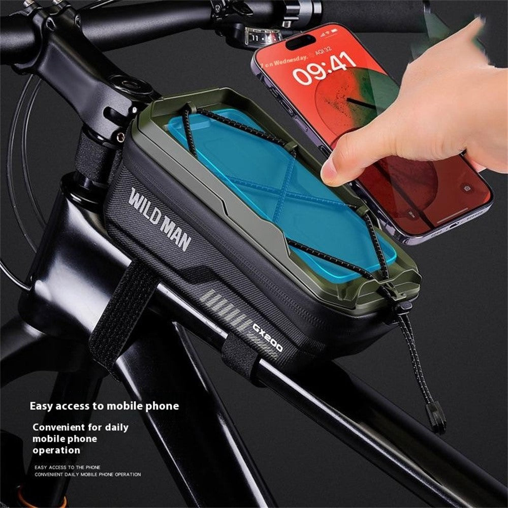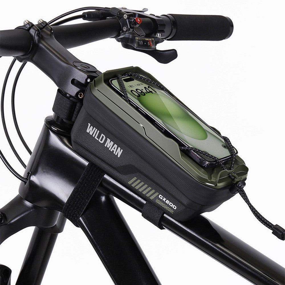 WILD MAN GX200 Bolsa de Cuadro de Bicicleta Rígida EVA 1L – Soporte de Teléfono Giratorio 360° y Fijación Rápida – Amarillo Oscuro