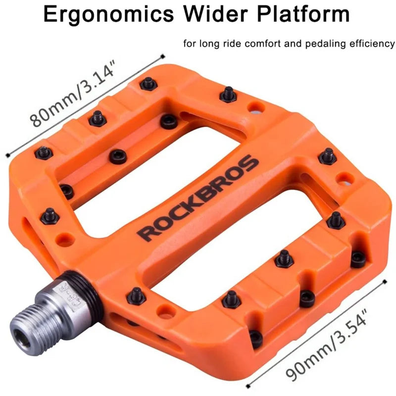 Plataforma ancha y ligera: Pedales ergonómicos ultraligeros de 10,5 cm de ancho y 365 g con rodamientos DU de alta velocidad para una comodidad duradera y mejor eficiencia al pedalear.
