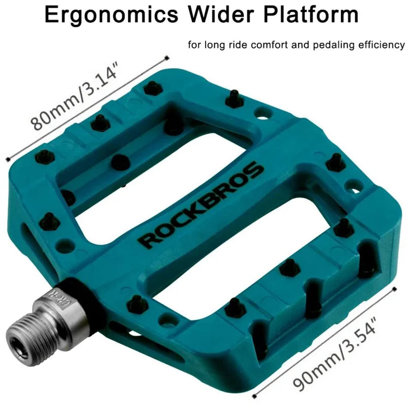 Plataforma ancha y ligera: Pedales ergonómicos ultraligeros de 10,5 cm de ancho y 365 g con rodamientos DU de alta velocidad para una comodidad duradera y mejor eficiencia al pedalear.