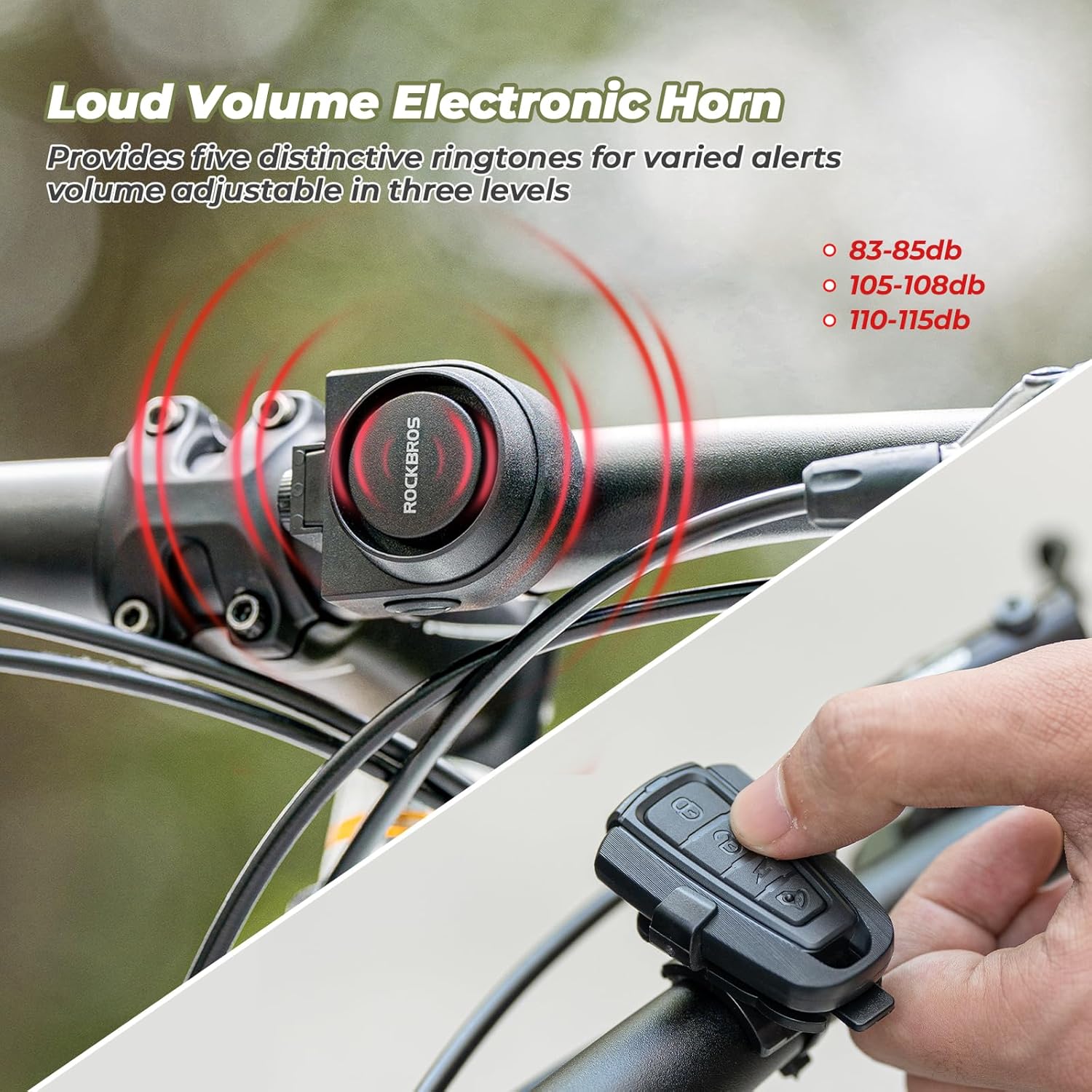 En resumen, este sistema ROCKBROS es una solución dos en uno que combina un potente avisador sonoro y una alarma antirrobo, con un control inalámbrico práctico y una gran fiabilidad en todo tipo de clima.
