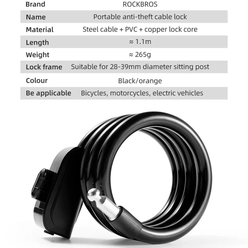 2452 Antirrobo de Bicicleta ROCKBROS RKS515 Enrollable en Acero