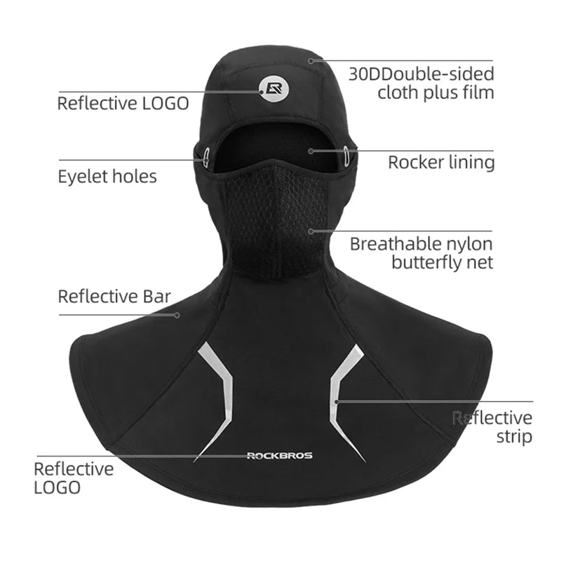 ROCKBROS YPP042 Cubrecuello y mascarilla facial 2 en 1 con forro polar y filtro para deportes de invierno (moto, ciclismo)