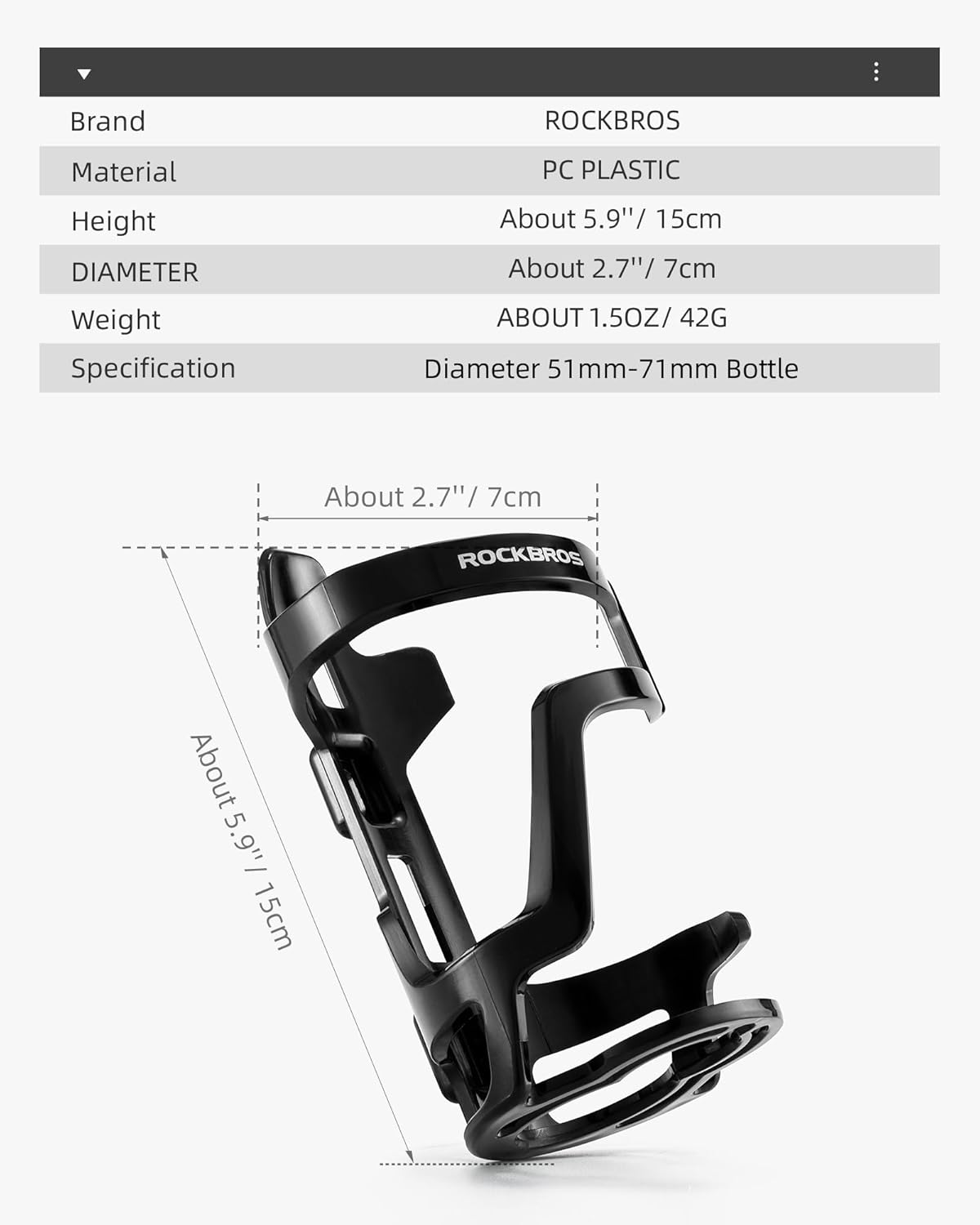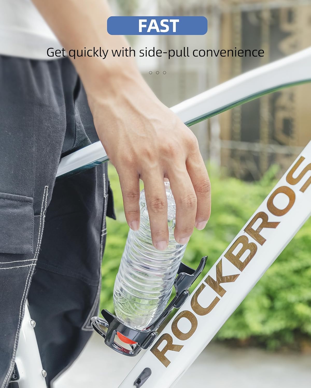 Ofrece un acceso fácil al agua. El diseño flexible del portabidón Rockbros le permite adaptarse a botellas con un diámetro de 51 mm a 73 mm.