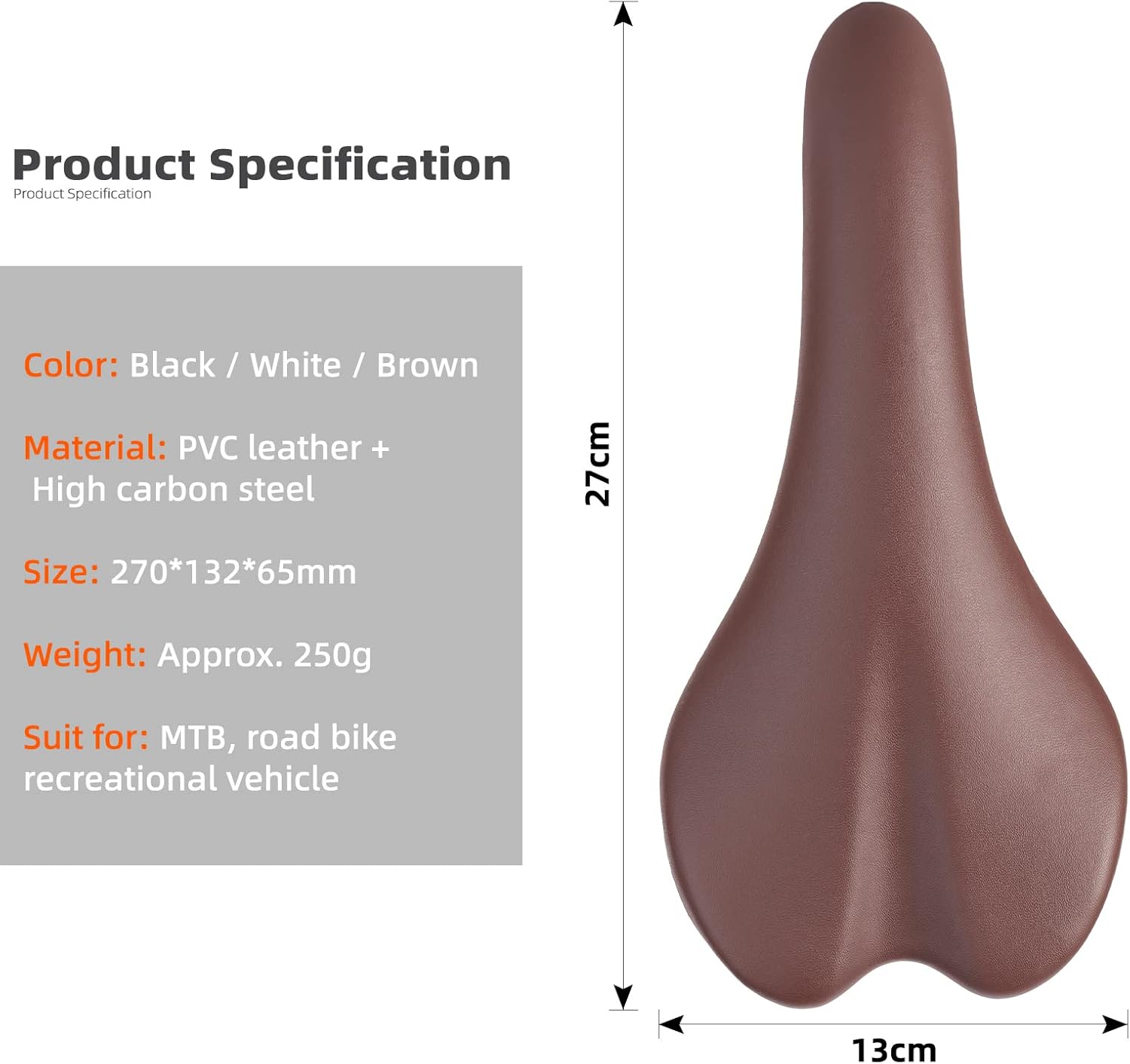 Fabricado en cuero PVC impermeable, el sillín resiste salpicaduras, polvo y el desgaste diario. Fácil de limpiar, mantiene sus cualidades estéticas y funcionales con el tiempo. Sus rieles de acero sólidos aseguran estabilidad y durabilidad.