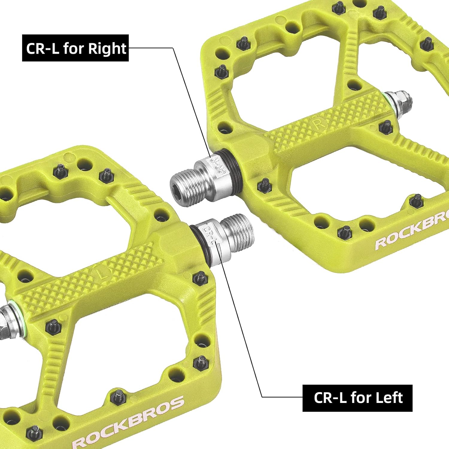 Los rodamientos sellados protegen eficazmente el eje del polvo y el agua, asegurando una rotación suave y prolongando la vida útil de los pedales. Su instalación se facilita con marcas claras: "CR-L" para el pedal izquierdo y "CR-R" para el derecho. Gracias a su rosca estándar de 9/16", son compatibles con la mayoría de bicicletas de montaña, de carrera o eléctricas.
