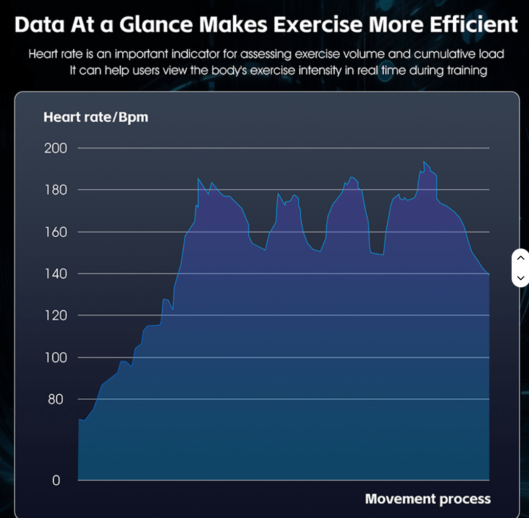 See nutikas südame löögisageduse monitor on varustatud sisseehitatud südame löögisageduse monitoriga, mis jälgib täpselt teie südame löögisagedust treeningute ajal. See pakub reaalajas südame löögisageduse andmeid, et aidata teil optimeerida oma treeningut ja saavutada oma fitnessieesmärgid.