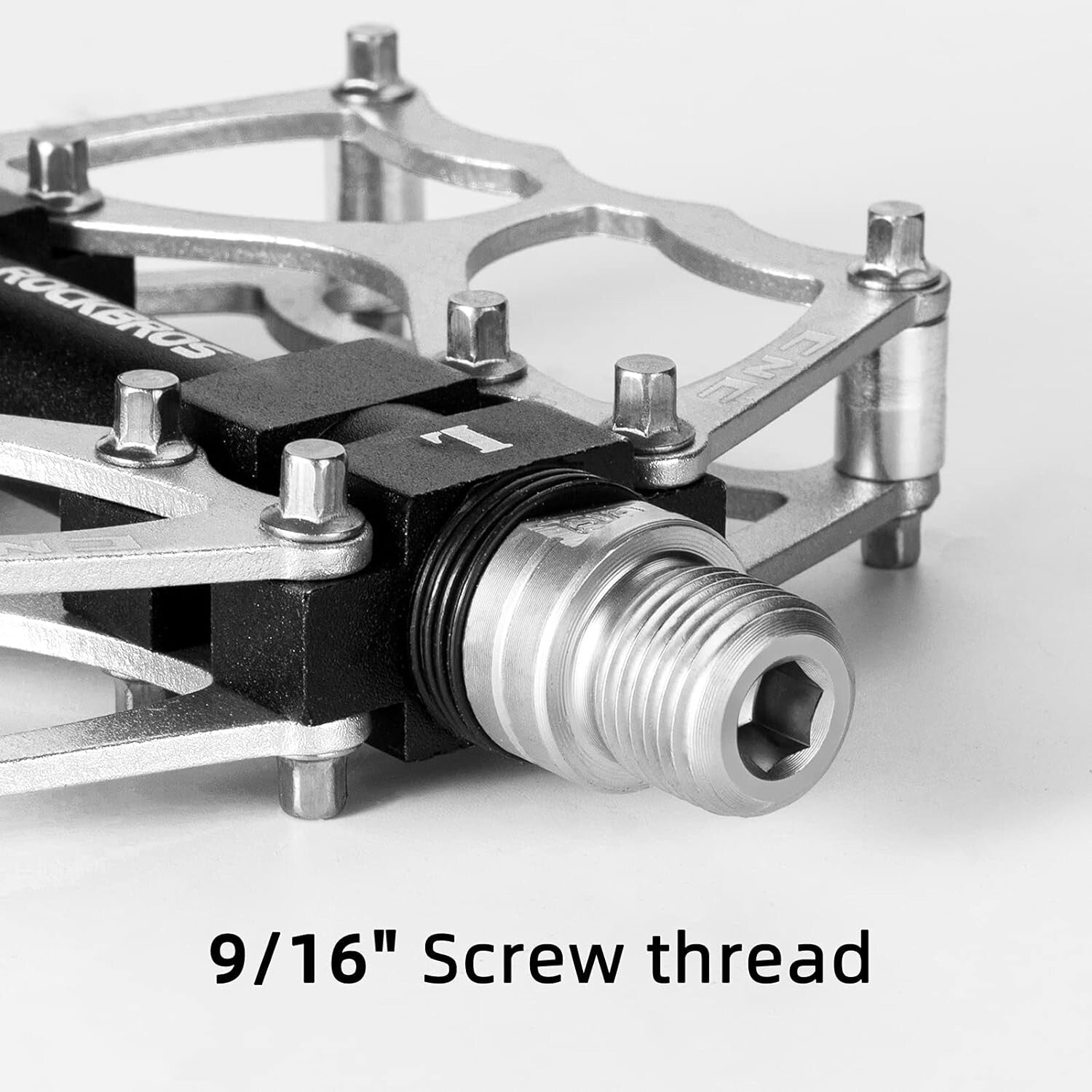 Lai ühilduvus: Tänu standardsele 9/16-tollisele võlli läbimõõdule (Spindle Diameter) sobivad need pedaalid enamiku jalgratastega (maastikuratas, maanteeratas, BMX). Pedaali võlli pikkus on 20 mm.