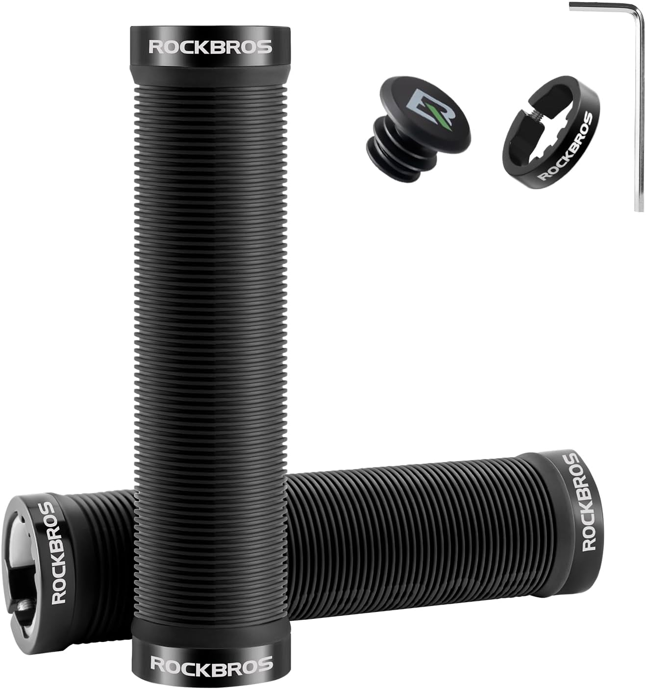 Migliora il tuo comfort e controllo con le manopole per manubrio ROCKBROS a doppia chiusura. Progettate per offrire una presa superiore e un'installazione sicura, sono perfette per MTB, BMX, scooter e una varietà di biciclette.