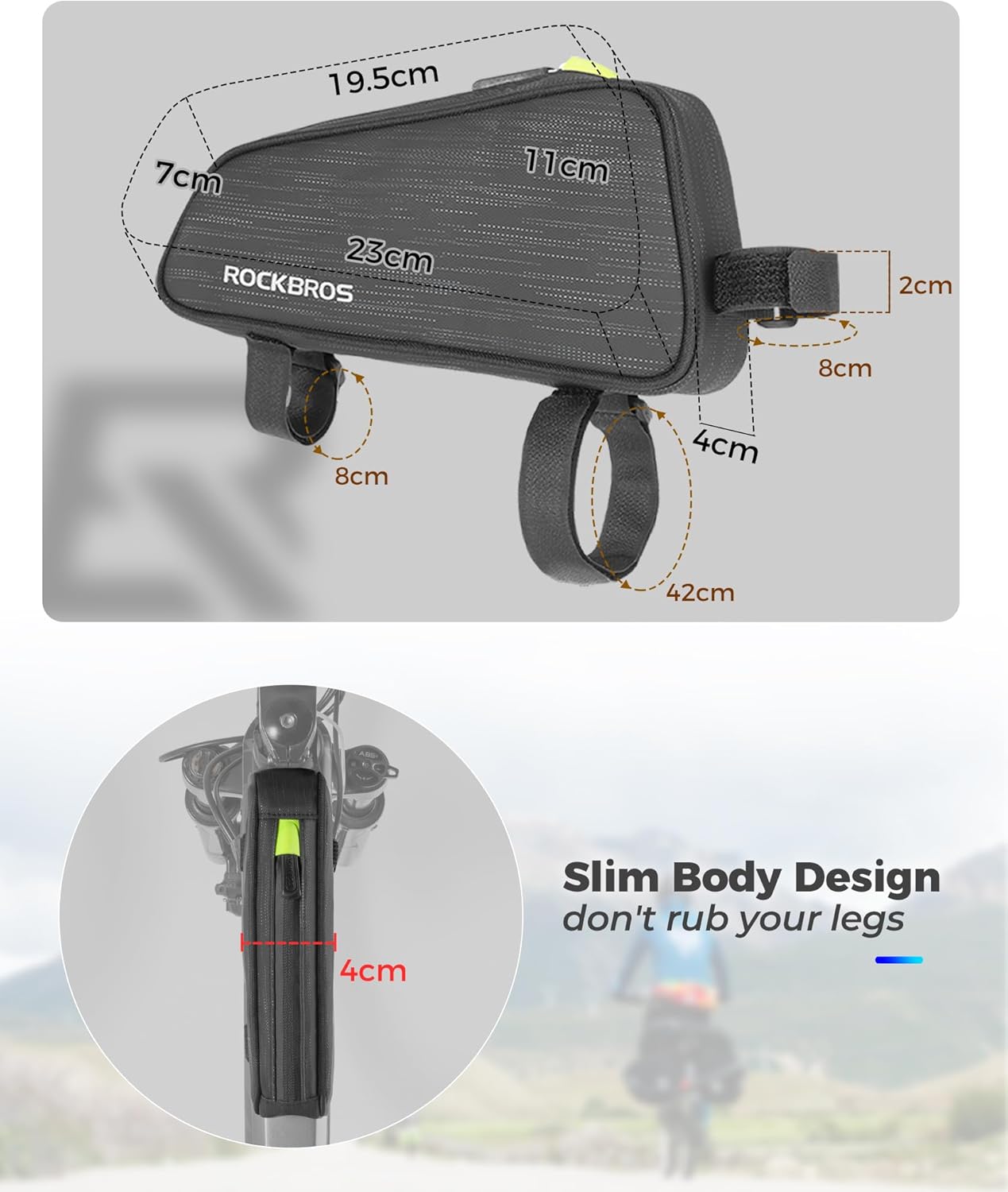 Scopri la borsa da telaio ROCKBROS, una soluzione di stoccaggio leggera e compatta, ideale per i tuoi spostamenti quotidiani e le uscite sportive. Progettata per praticità e sicurezza, si integra perfettamente al telaio della tua bici senza intralciarti.
