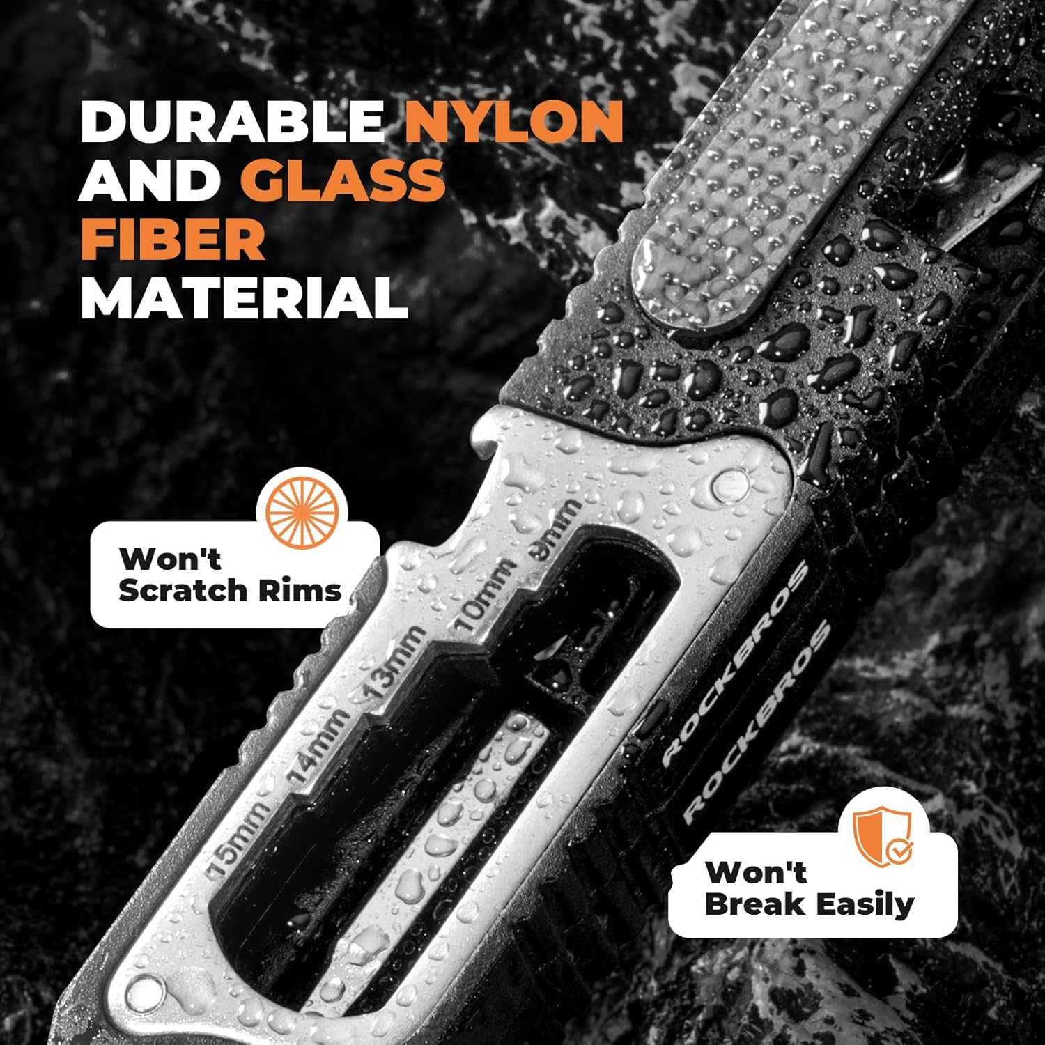 Materiale ad alta resistenza : Il corpo è realizzato in nylon PA6 rinforzato con il 30% di fibra di vetro, offrendo un'eccellente resistenza agli urti, alle rotture e ai graffi, anche sui cerchi in carbonio.
