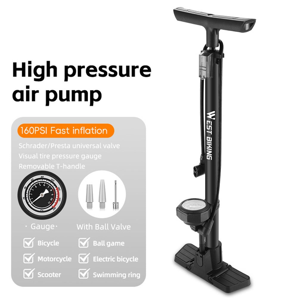 WEST BIKING YP0711181 Pompa a Mano per Bicicletta con Manometro 160 PSI – Compatibile con MTB, Strada, E-Bike e Veicoli – Nera