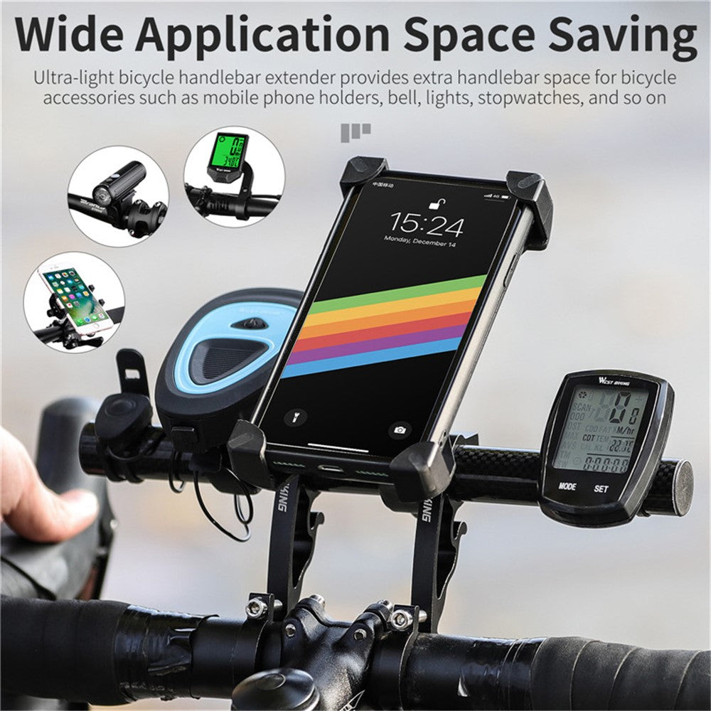 WEST BIKING – Supporto Manubrio Bici in Carbonio con Doppio Collarino – Estensione Ultra-Leggera per Lampada, GPS e Contachilometri