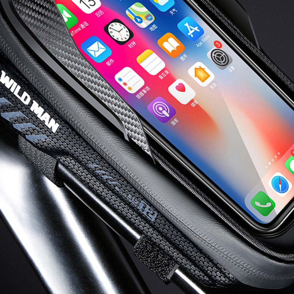 WILD MAN E12 Borsa Impermeabile per Bicicletta – Borsa per Tubo Superiore 1L con Schermo Touch – Rosso