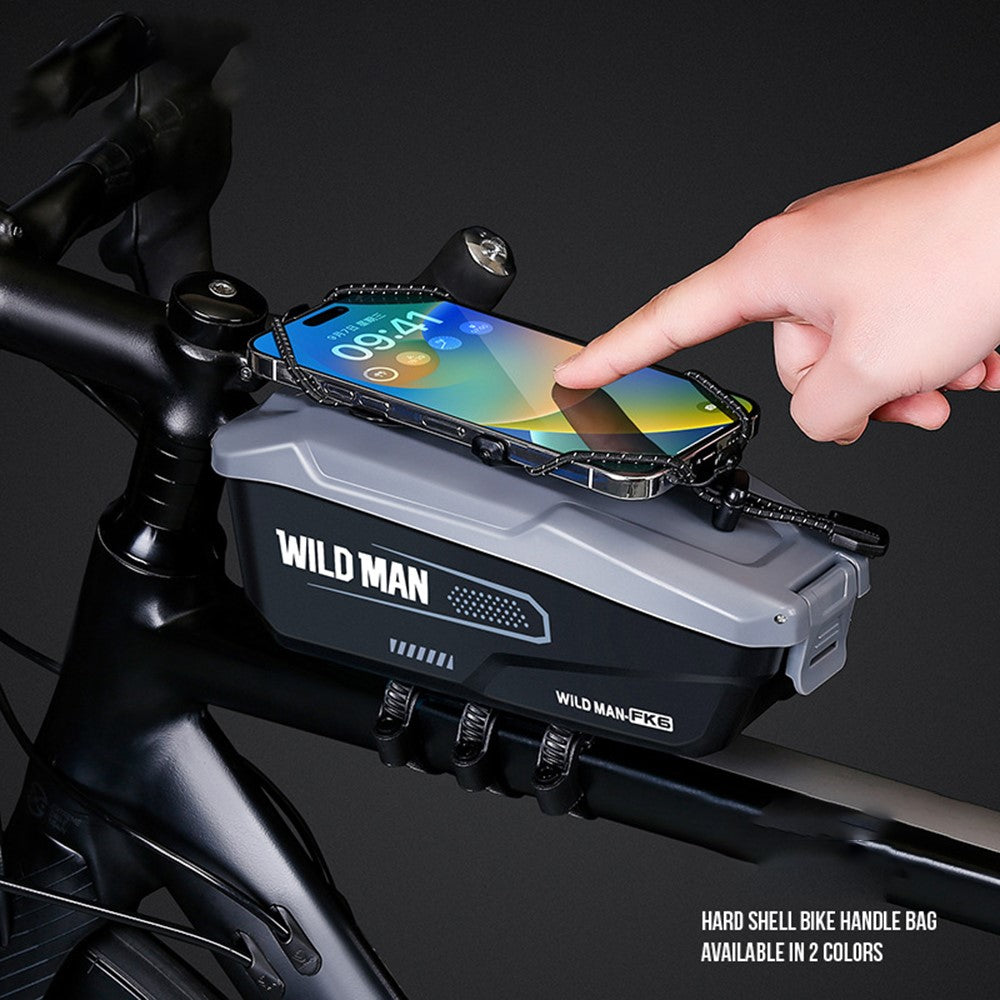 WILD MAN FK6 Borsa da Telaio Bici Rigida PC 1L – Supporto Telefono Rotante 360° e Fissaggio Rapido – Grigio Chiaro