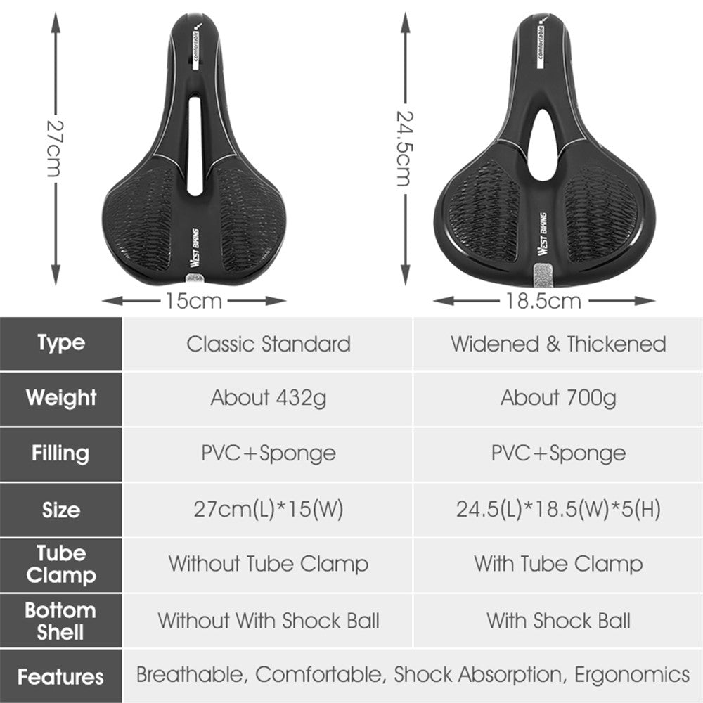 Migliora le tue prestazioni e il tuo comfort con la sella da bici WEST BIKING in pelle PU morbida e schiuma di poliuretano ad alta elasticità. Il suo design concavo 3D riduce la pressione sulle zone sensibili assicurando una ventilazione ottimale per viaggi più piacevoli.