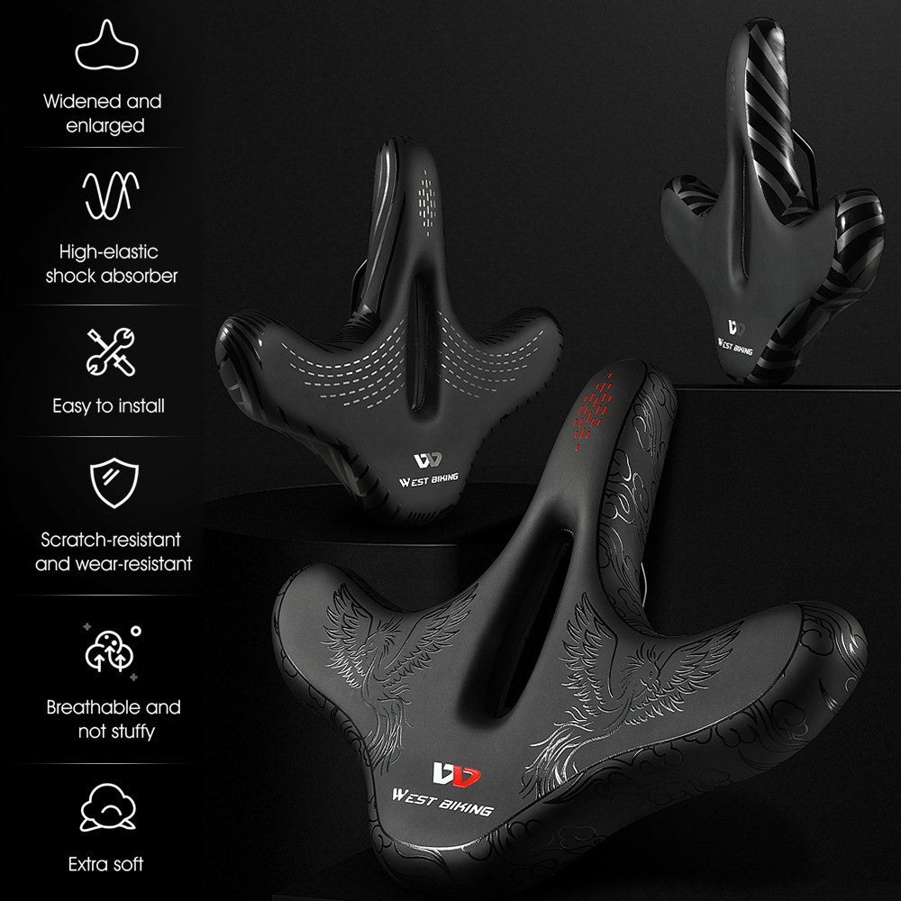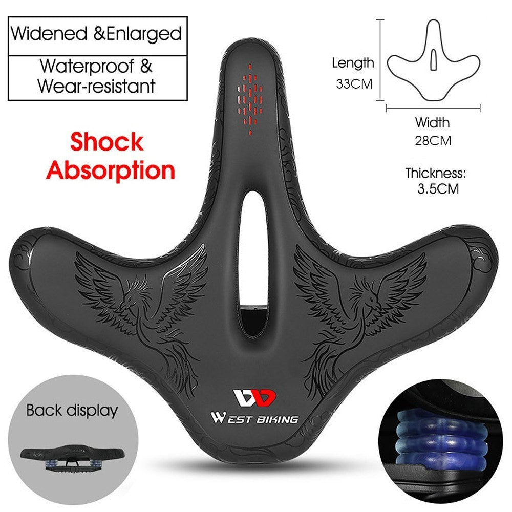 Riscopri il comfort del ciclismo a lunga distanza con la sella WEST BIKING, appositamente progettata per ridurre l'affaticamento muscolare e proteggere i tuoi glutei durante i tuoi tragitti. La sua imbottitura spessa in spugna ad alta densità e il design allargato da 33 cm assicurano un supporto ottimale, adattandosi perfettamente alla forma delle anche senza ostacolare la pedalata.