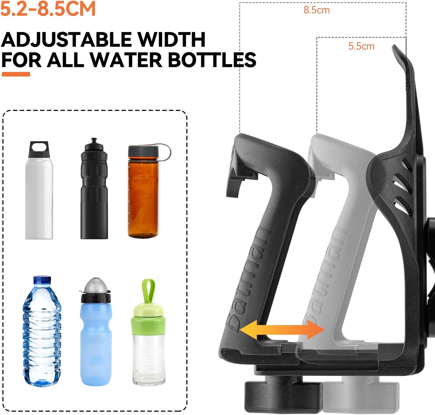 La larghezza del supporto si regola precisamente al diametro della tua borraccia, avvolgendola saldamente. Questa tenuta stretta impedisce alla borraccia di vibrare o cadere, proteggendola dagli urti.