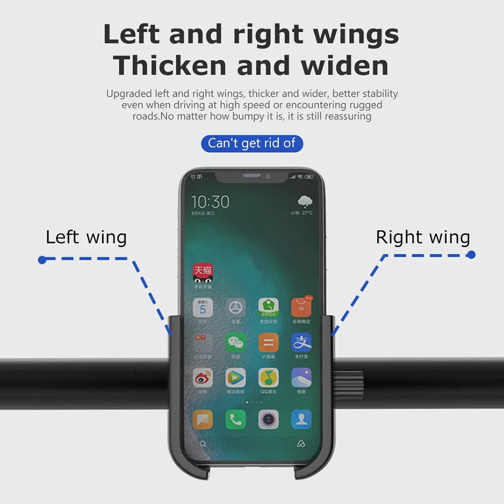 Compatibile con la maggior parte degli smartphone (da 60 a 100 mm di larghezza), garantisce una tenuta sicura e antiurto, anche su strade irregolari. Grazie al sistema di rotazione a 360°, puoi orientare il telefono in modalità verticale o orizzontale e regolare l'inclinazione per un comfort di lettura ottimale.