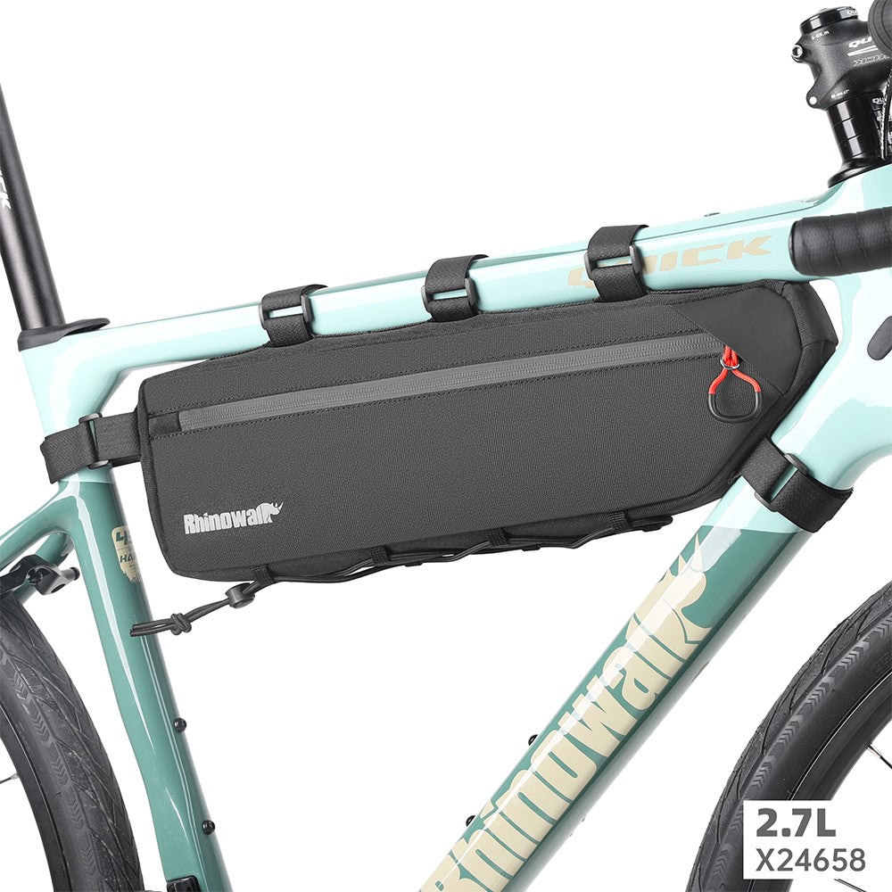 Pedala comodamente con la borsa da telaio triangolare RHINOWALK X24658, progettata per integrarsi perfettamente al telaio della tua bici senza ostacolare le gambe. Il suo design pulito garantisce una guida fluida offrendo allo stesso tempo uno spazio di stivaggio pratico.