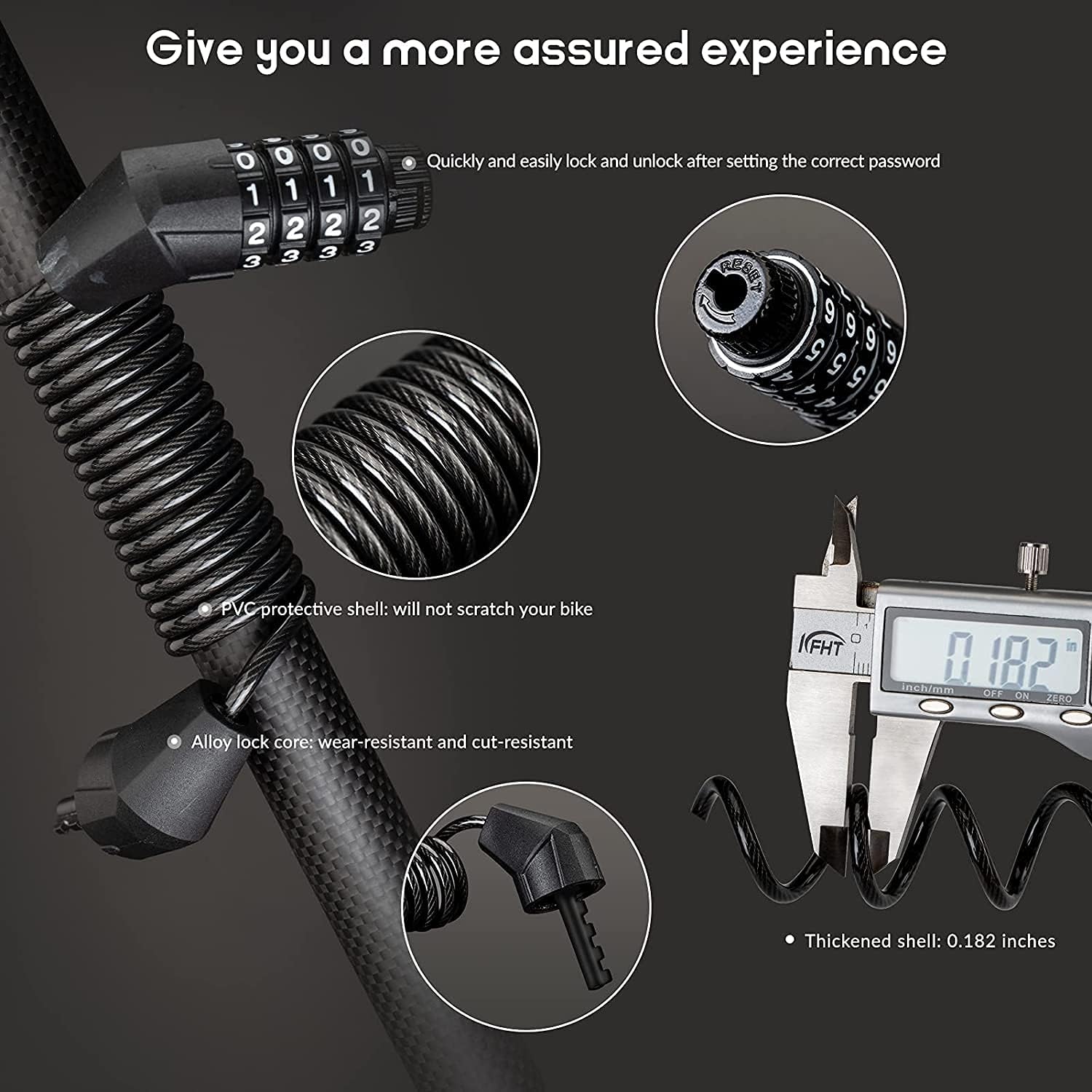 Realizzato in lega di zinco solida e dotato di un cavo in acciaio resistente, questo antifurto offre una buona resistenza contro i tentativi di taglio basilari. Il suo rivestimento spesso in PVC protegge i tuoi dispositivi dai graffi, che si tratti della tua bici, del casco o dei bagagli.