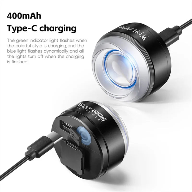 Dotato di una batteria integrata da 400 mAh, questa luce si ricarica facilmente tramite un cavo di ricarica. Puoi collegarla al tuo computer, a un caricatore da muro o a una batteria esterna per una ricarica rapida e pratica, garantendoti così una fonte di luce affidabile per le tue uscite.