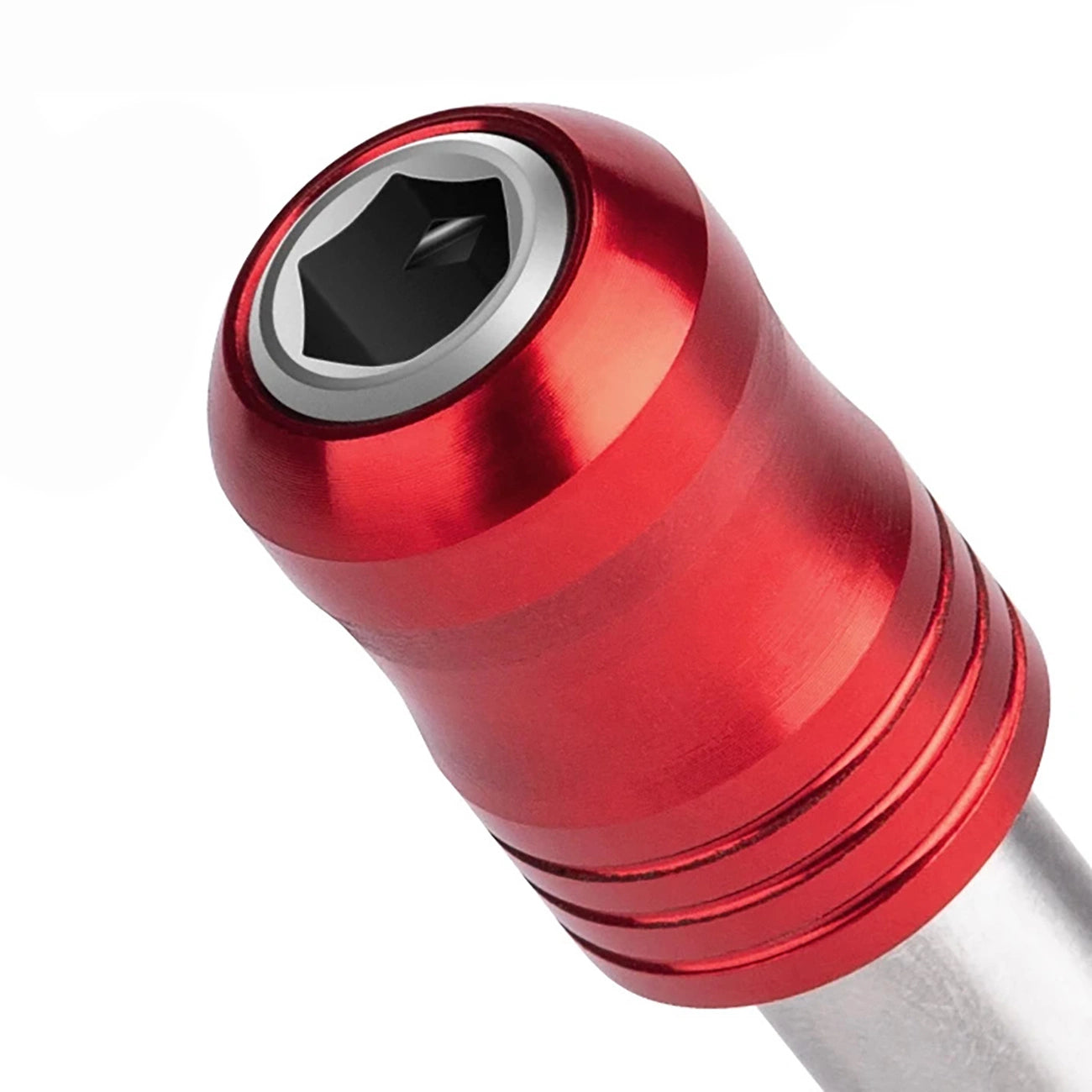 Un doppio sistema di fissaggio, associato a un magnete integrato e a una scanalatura di mantenimento, impedisce qualsiasi distacco accidentale delle punte. L'impugnatura antiscivolo con motivo a diamante garantisce una presa salda e confortevole, offrendo la massima precisione anche per riparazioni delicate.