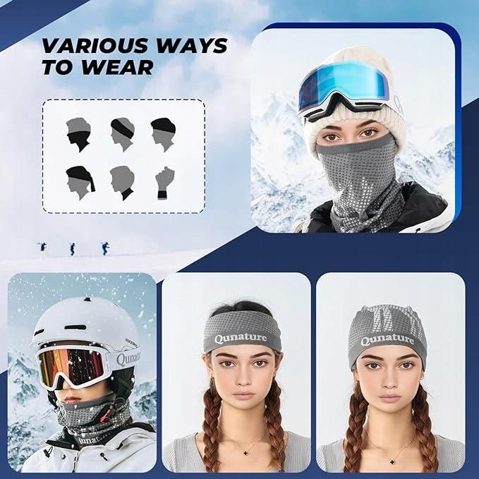 Questa sciarpa multifunzione Qunature, di colore grigio, è un accessorio versatile progettato per le attività all'aperto in autunno e inverno. Realizzata in nylon, è leggera, confortevole e offre un'ottima protezione dagli agenti atmosferici.