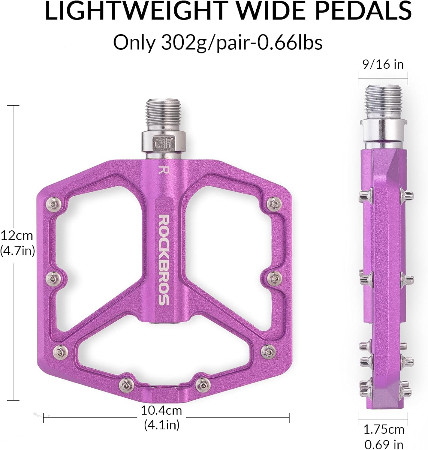 Le pedali piatti ROCKBROS in alluminio sono un'ottima scelta per i ciclisti che cercano un pedale leggero, performante e affidabile. Con un peso di soli 302 g a coppia, offrono un comfort di pedalata aumentato migliorando l'efficienza.